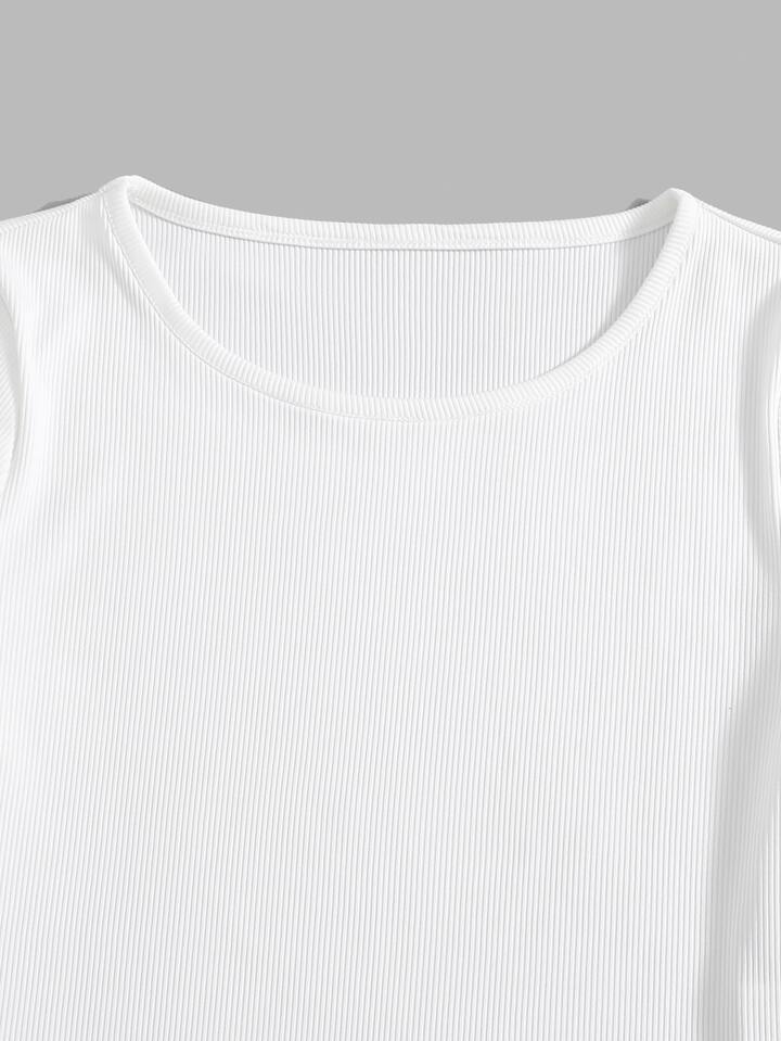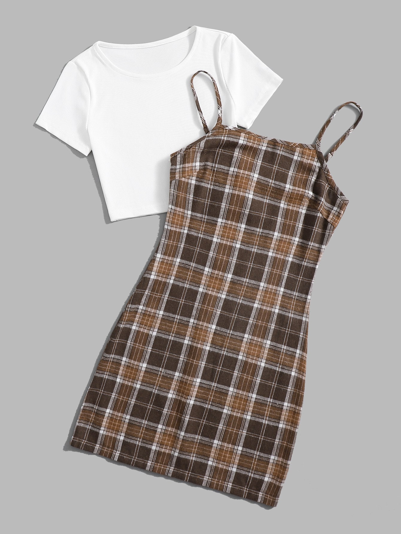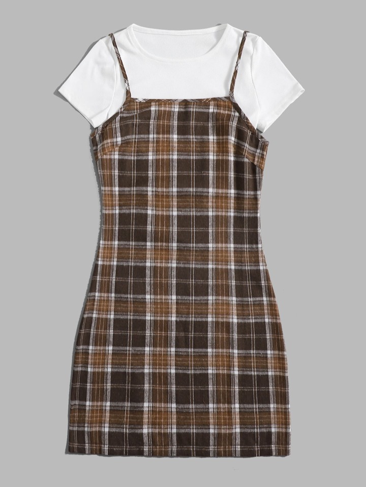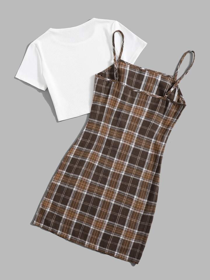 T-shirt côtelé unicolore & Robe à fines brides à carreaux