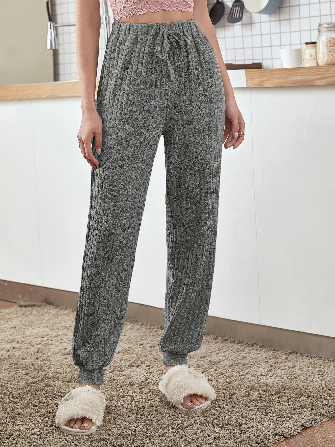 Pantalon détente côtelé avec nœud