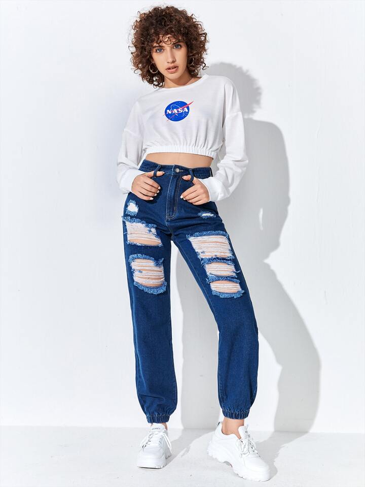 Jean de jogging unicolore déchiré