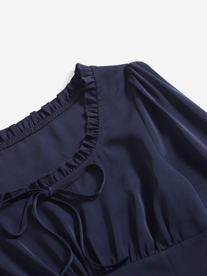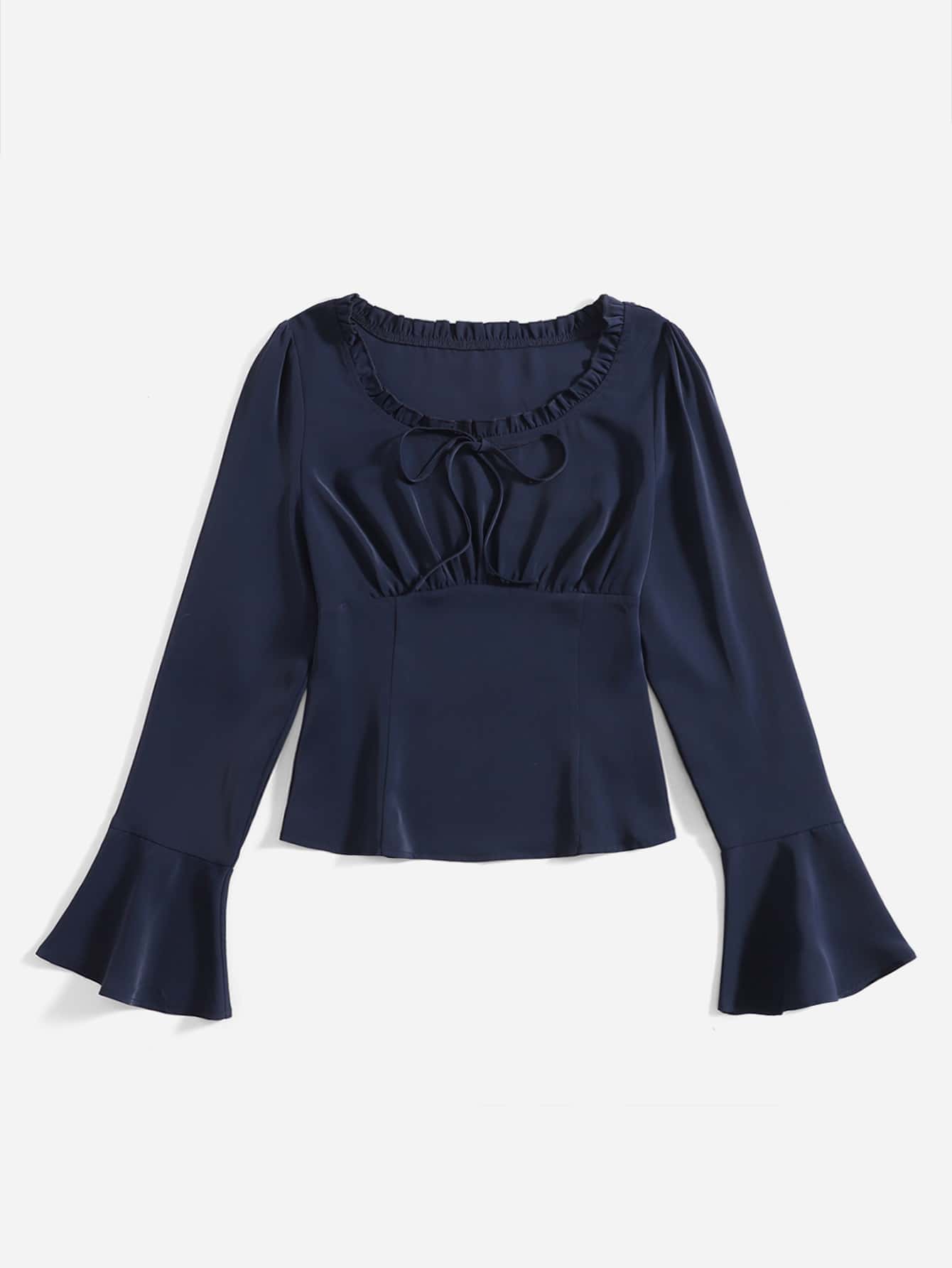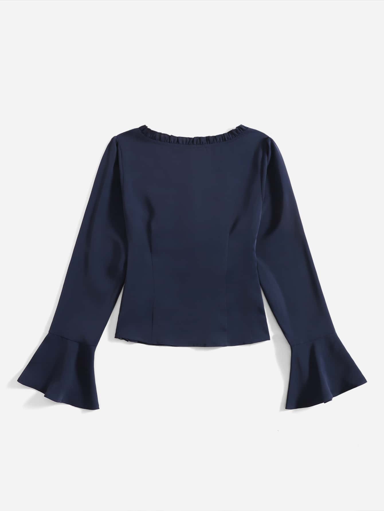 Blouse unicolore à ruchés manches évasées