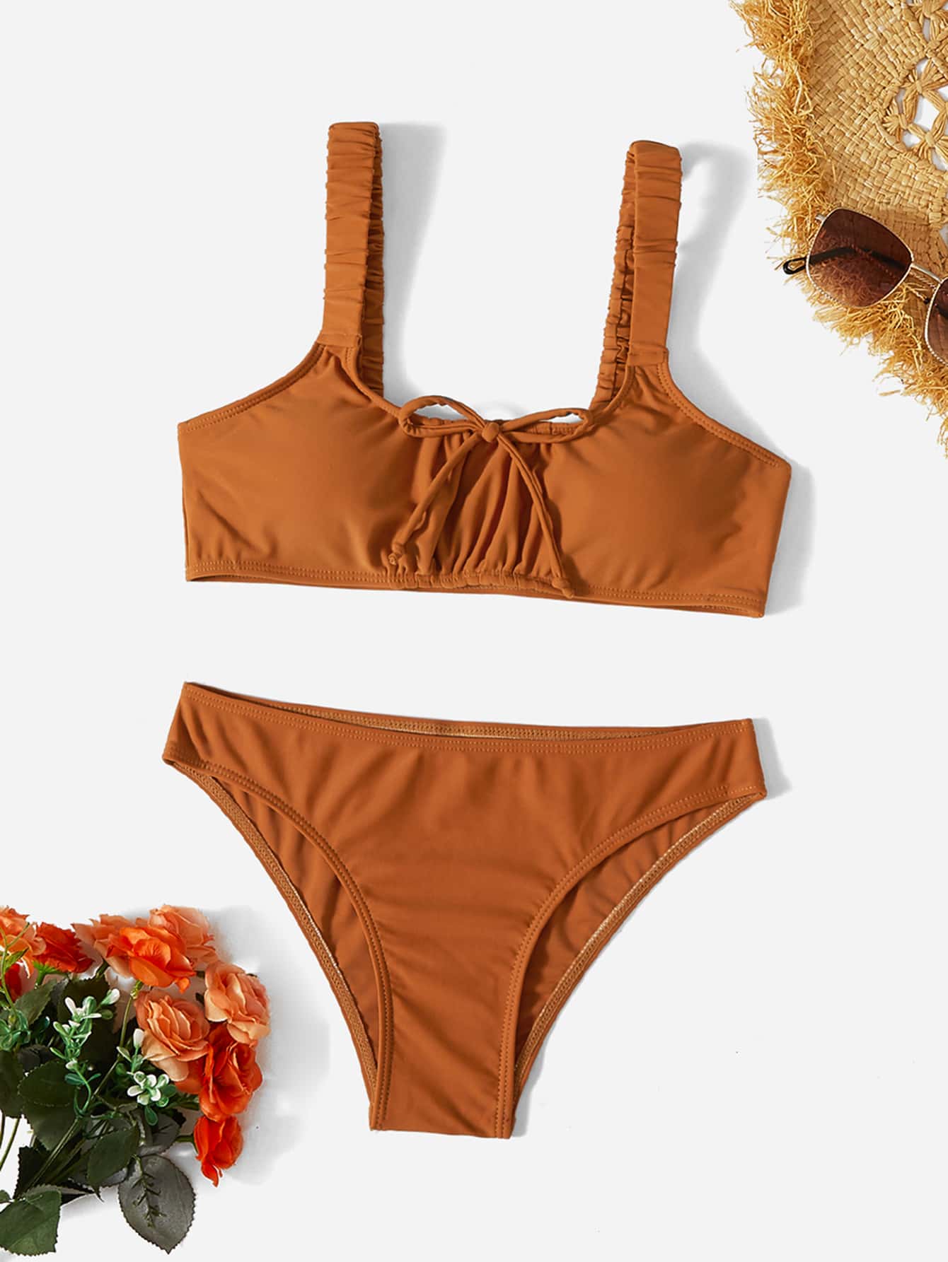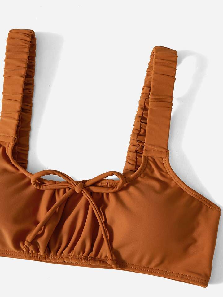 Bikini unicolore À Nœud Et Buste Froncé