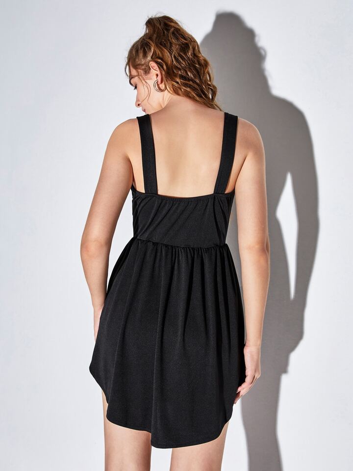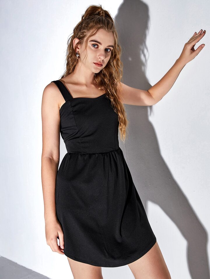 Robe à fines brides unicolore à ruché