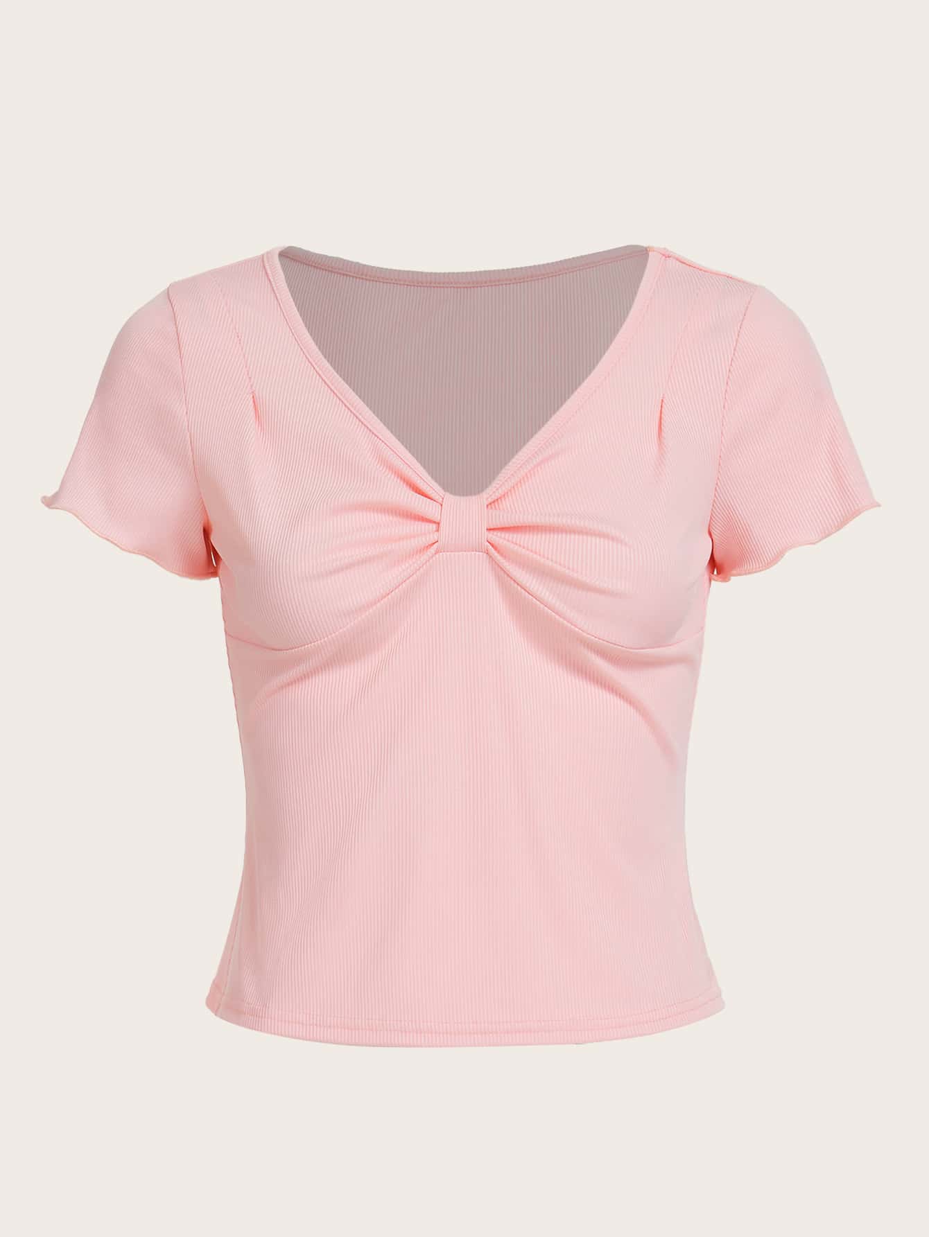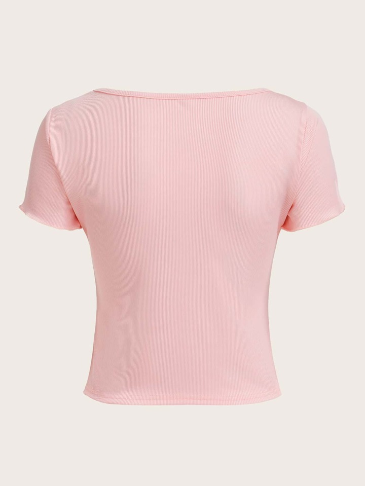 T-shirt Unicolore À Ruché Côtelé