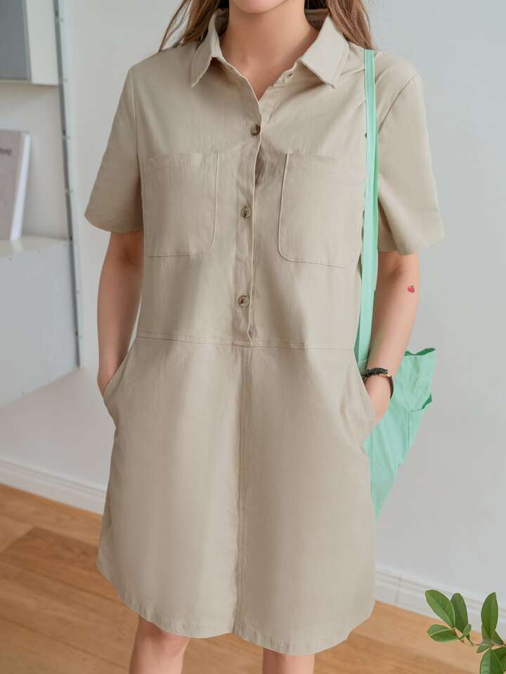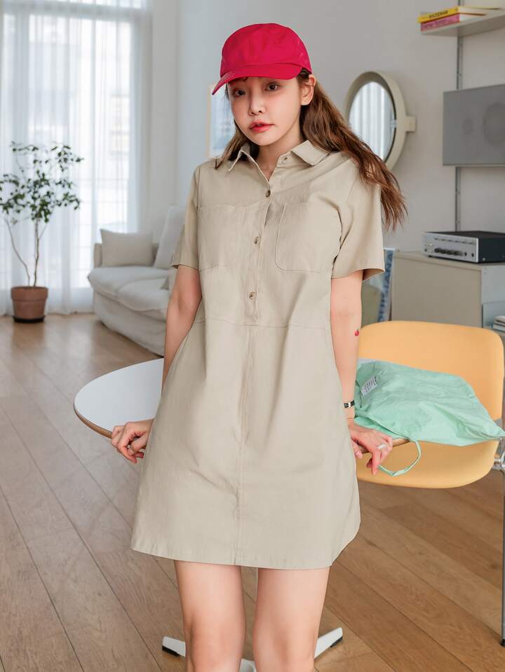 Robe unicolore à poche à bouton