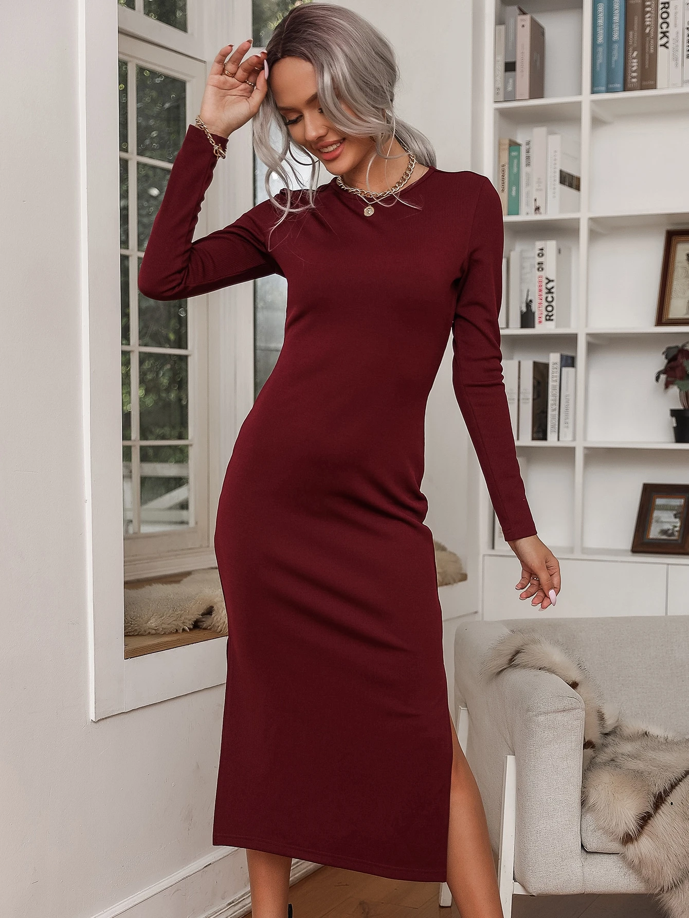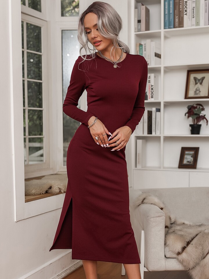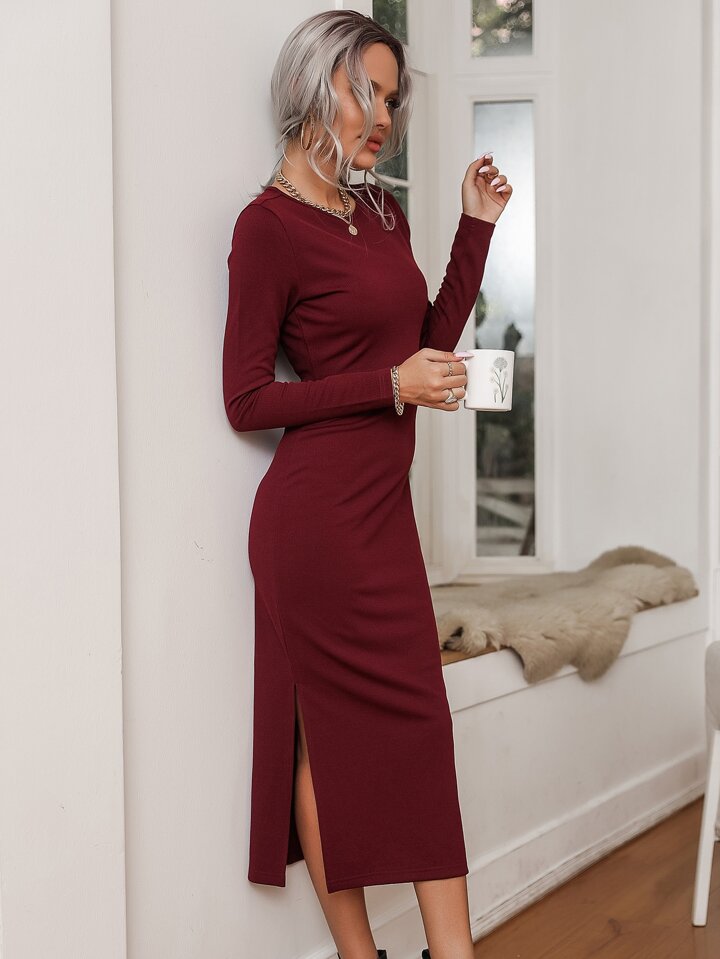 Robe longue moulante fendue unicolore