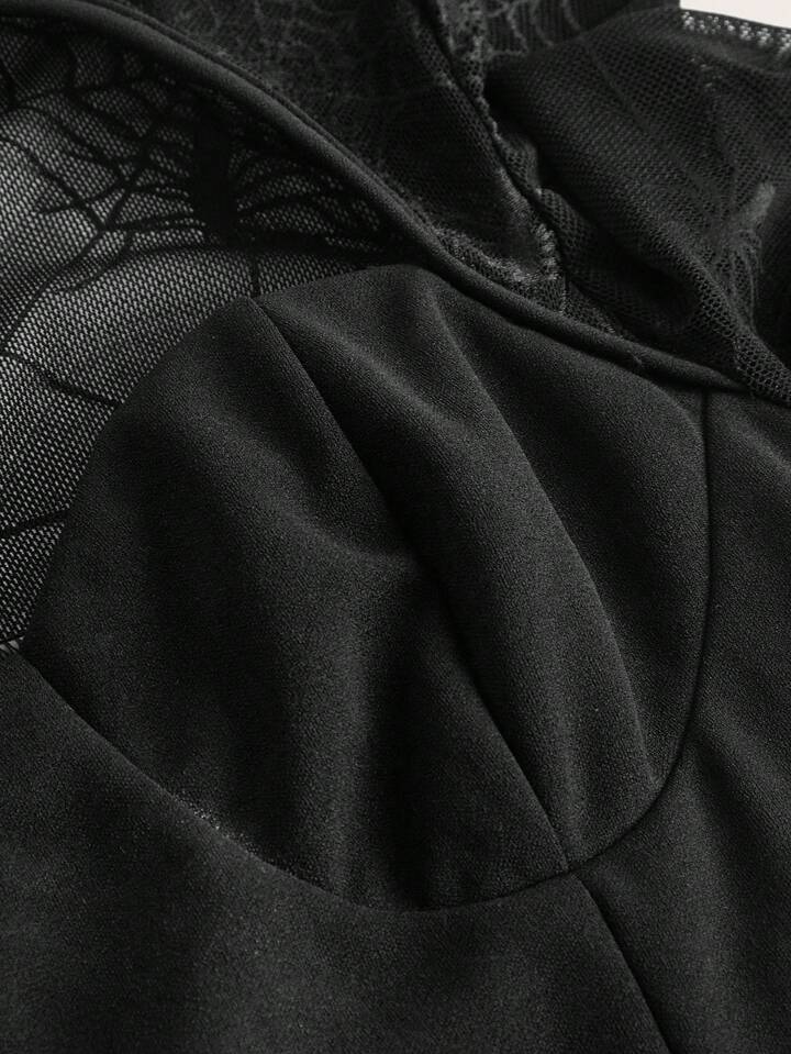 Top Imprimé Toile D'araignée À Nœud Découpé