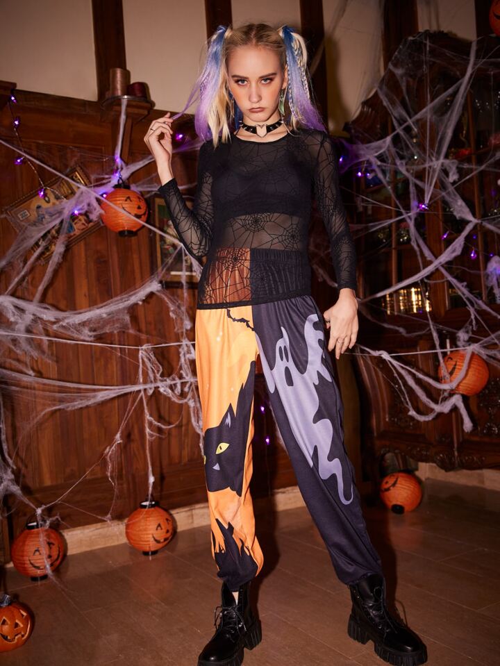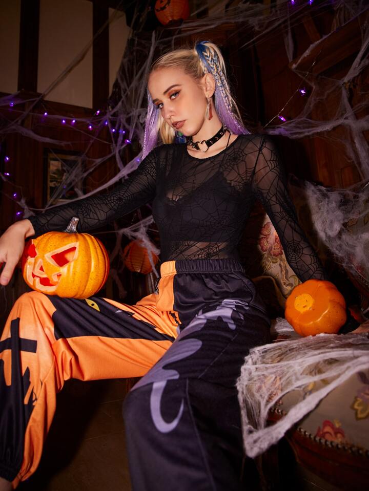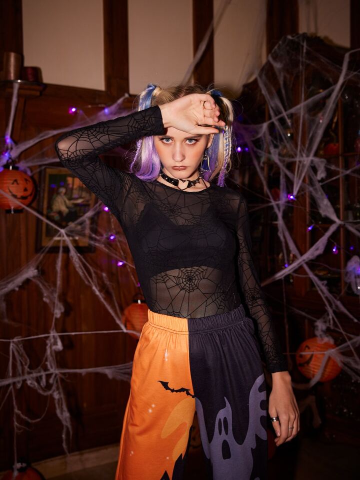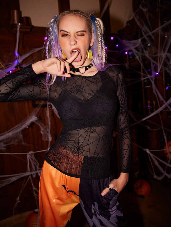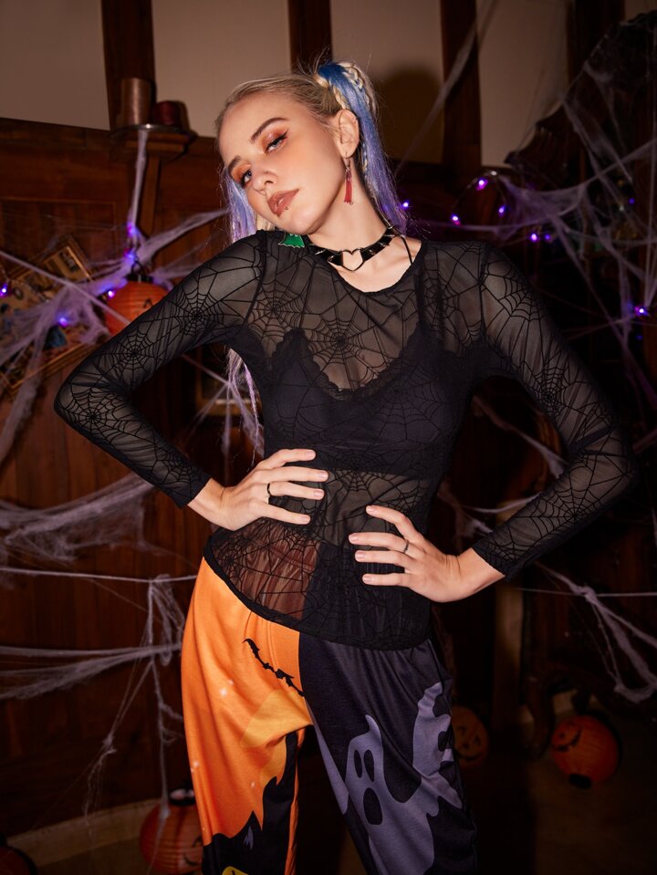 Top transparent avec motif toile d'araignée (sans soutien-gorge)