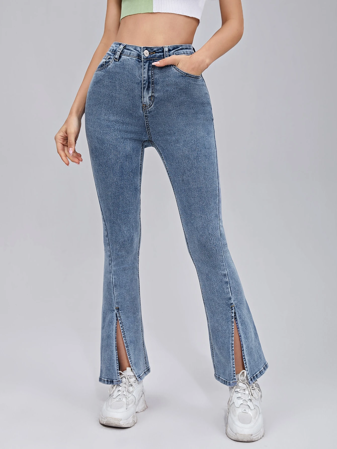 Jean pattes d'éléphant à ourlet fendu