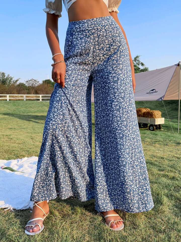 Pantalon à taille haute à jambe large avec imprimé floral mignon pour les vacances de printemps
