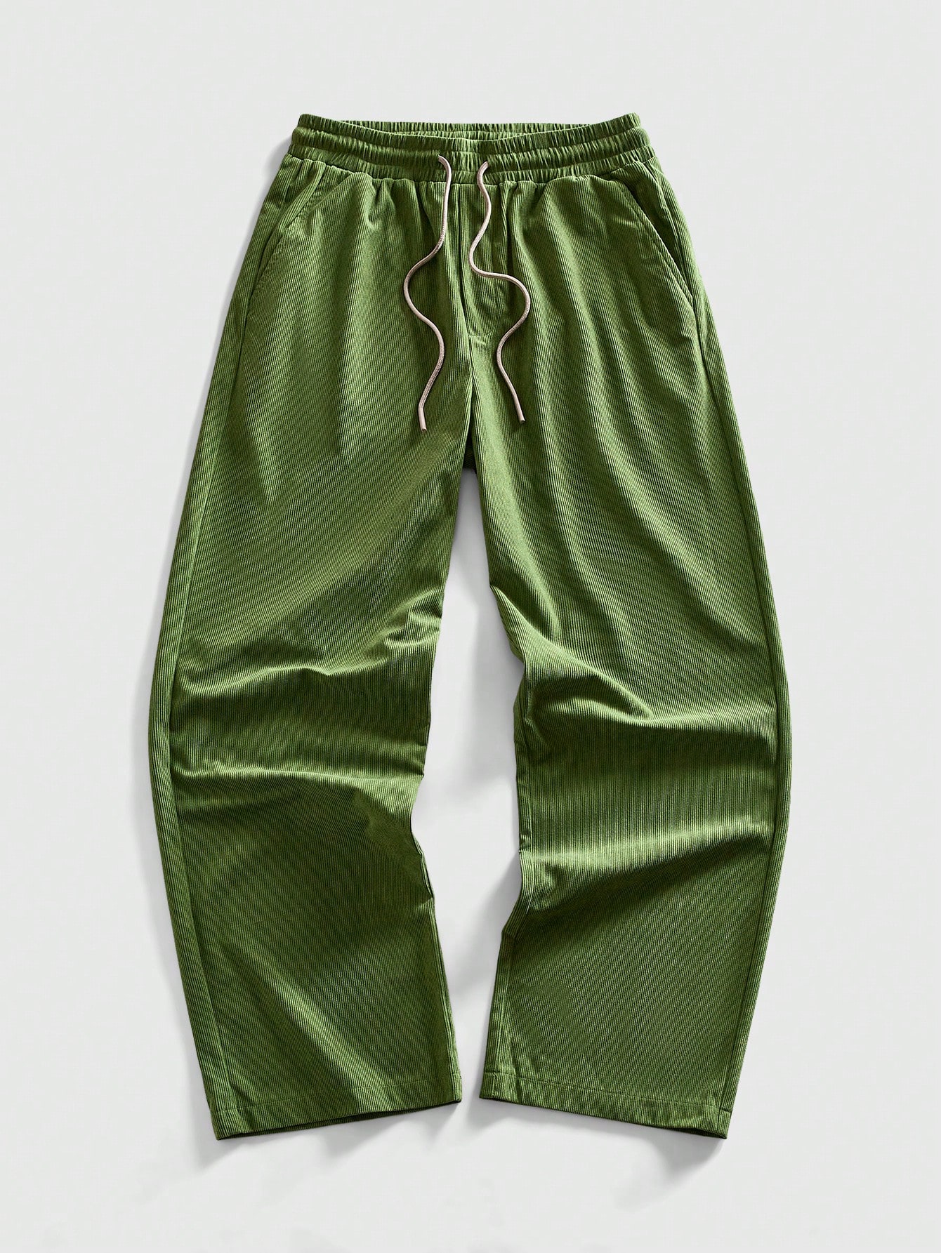 Pantalon décontracté ample à taille élastique et poches, couleur unie pour hommes
