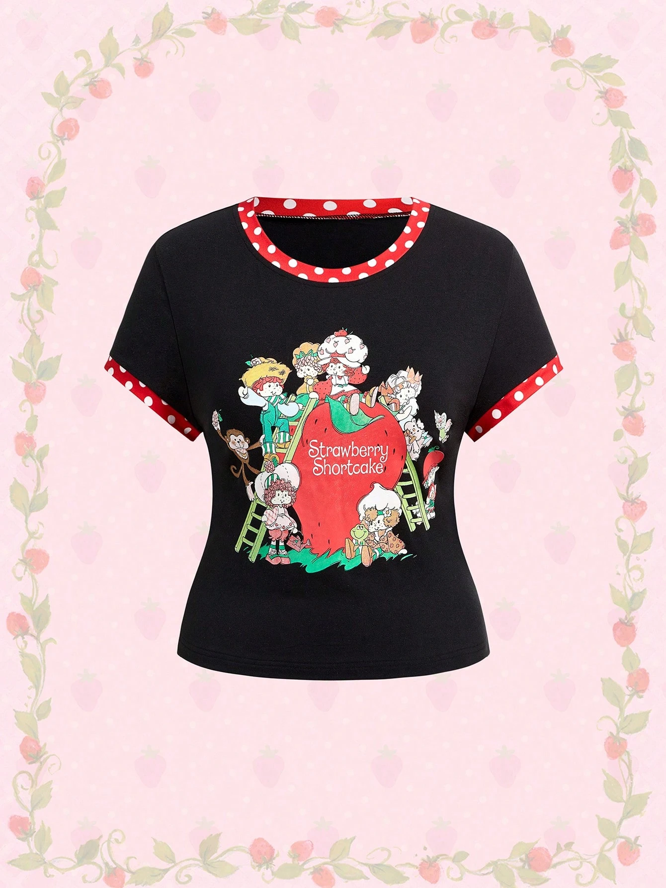 T-shirt ajusté à manches courtes avec motif de dessin animé doux, grande taille, été