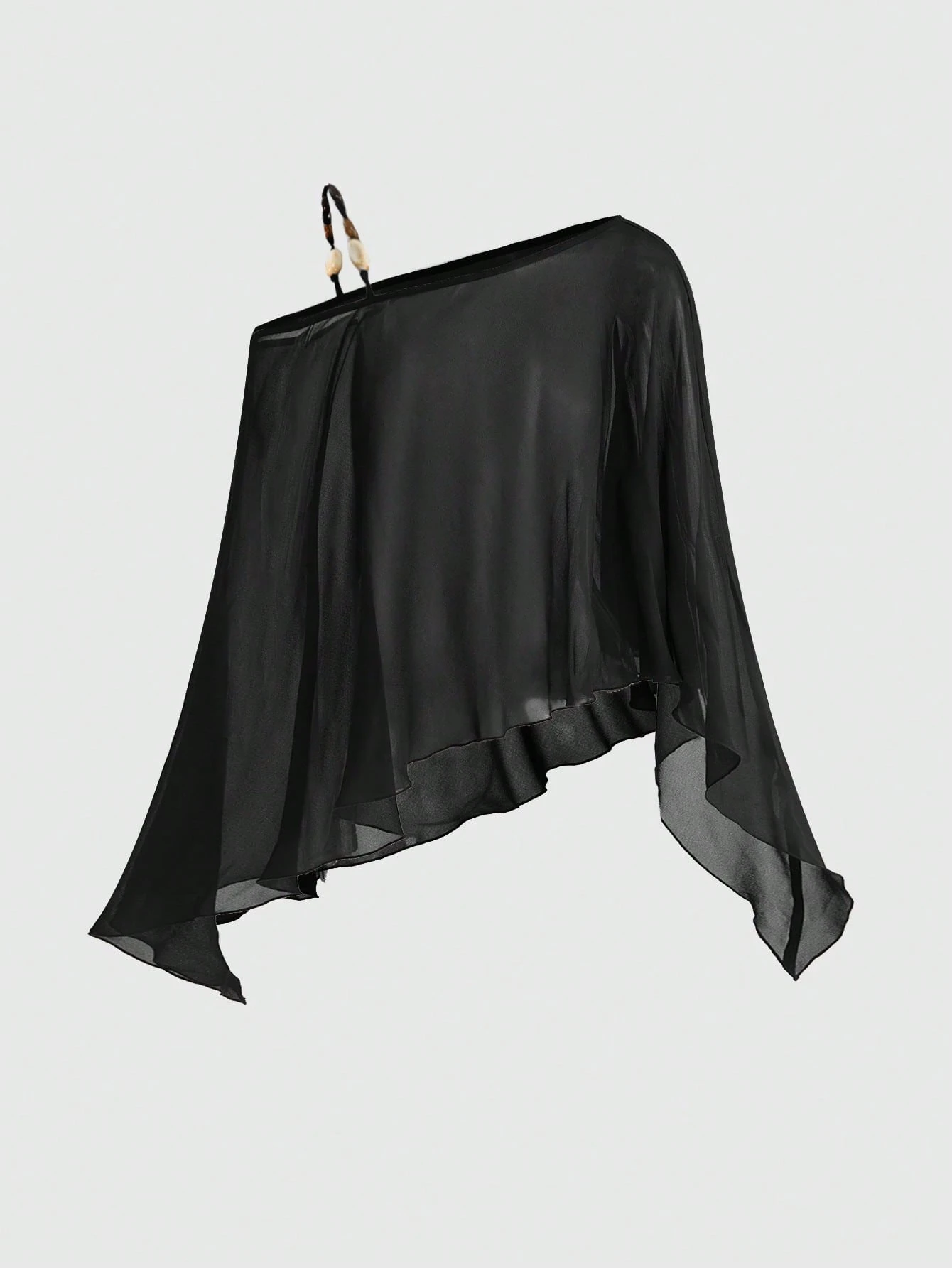 Châle couvrant sexy et chic de style Y2K en couleur unie avec perles, couvre-tout transparent, convient pour la plage, les vacances et la protection solaire pour femmes