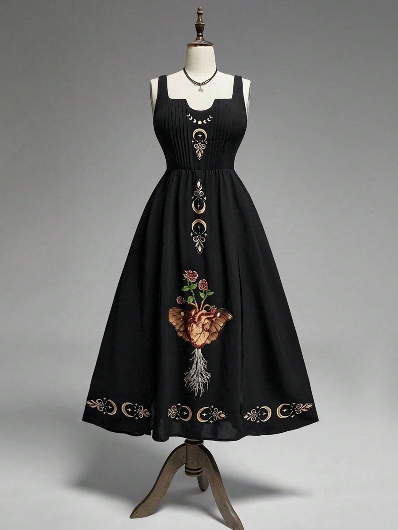 Robe fendue double avec imprimé gothique cœur, papillon, étoile et lune pour femmes