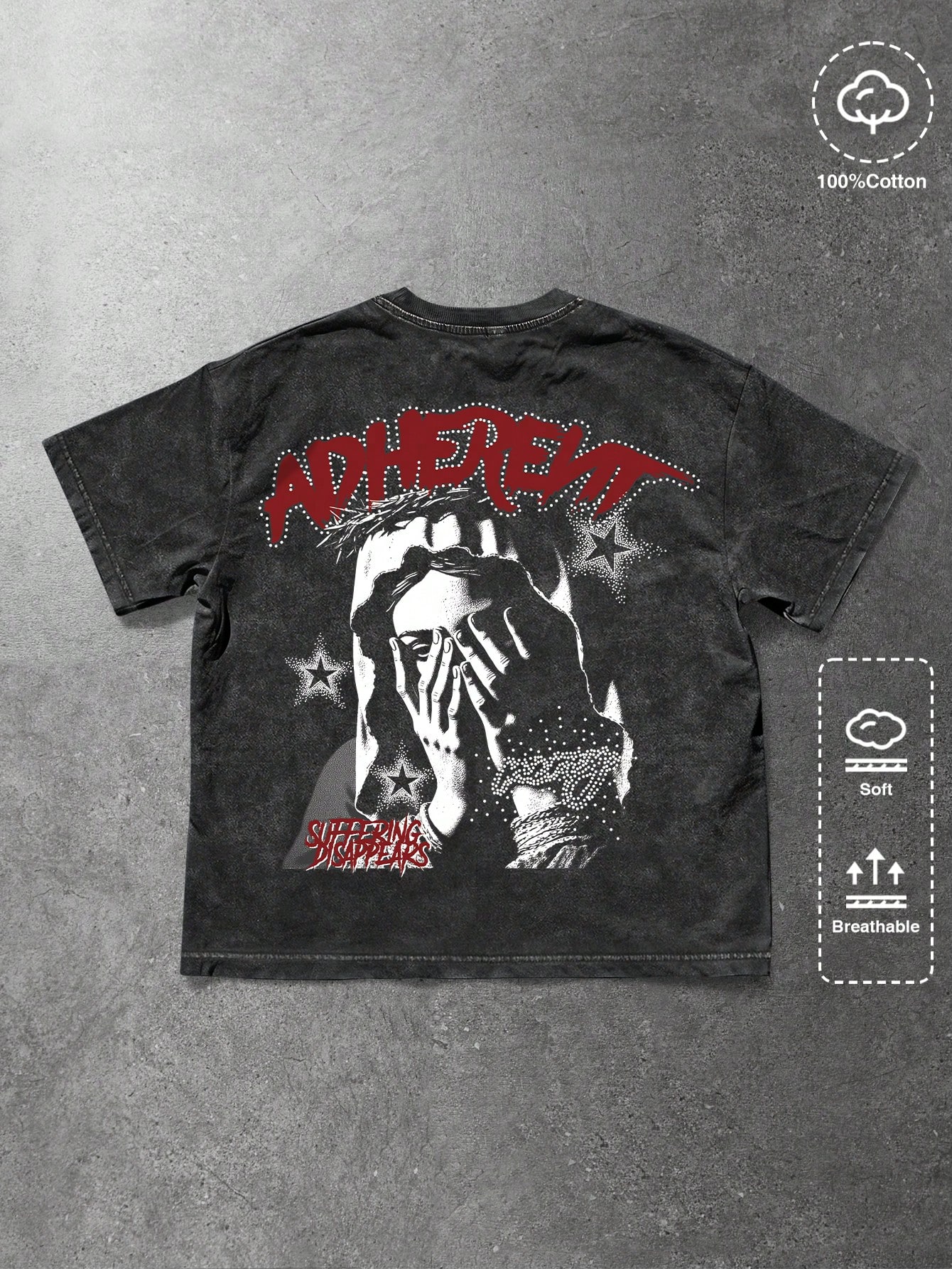 Street Life T-shirt col rond vintage délavé à l'acide pour homme, style de la rue. Convient pour un port casual au quotidien, printemps/été