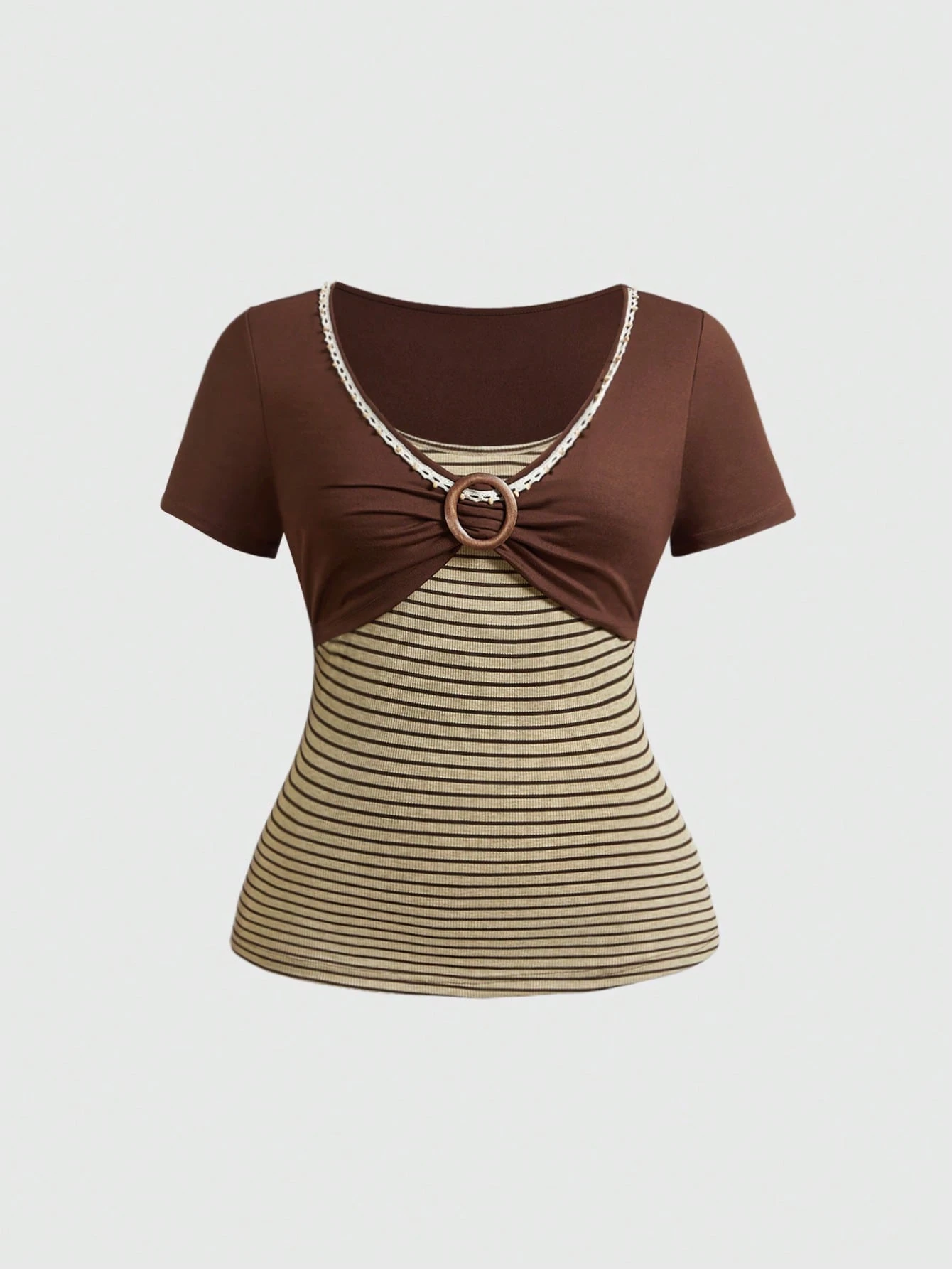 Hippie Tee-shirt rayé casual 2 en 1 grande taille pour femmes