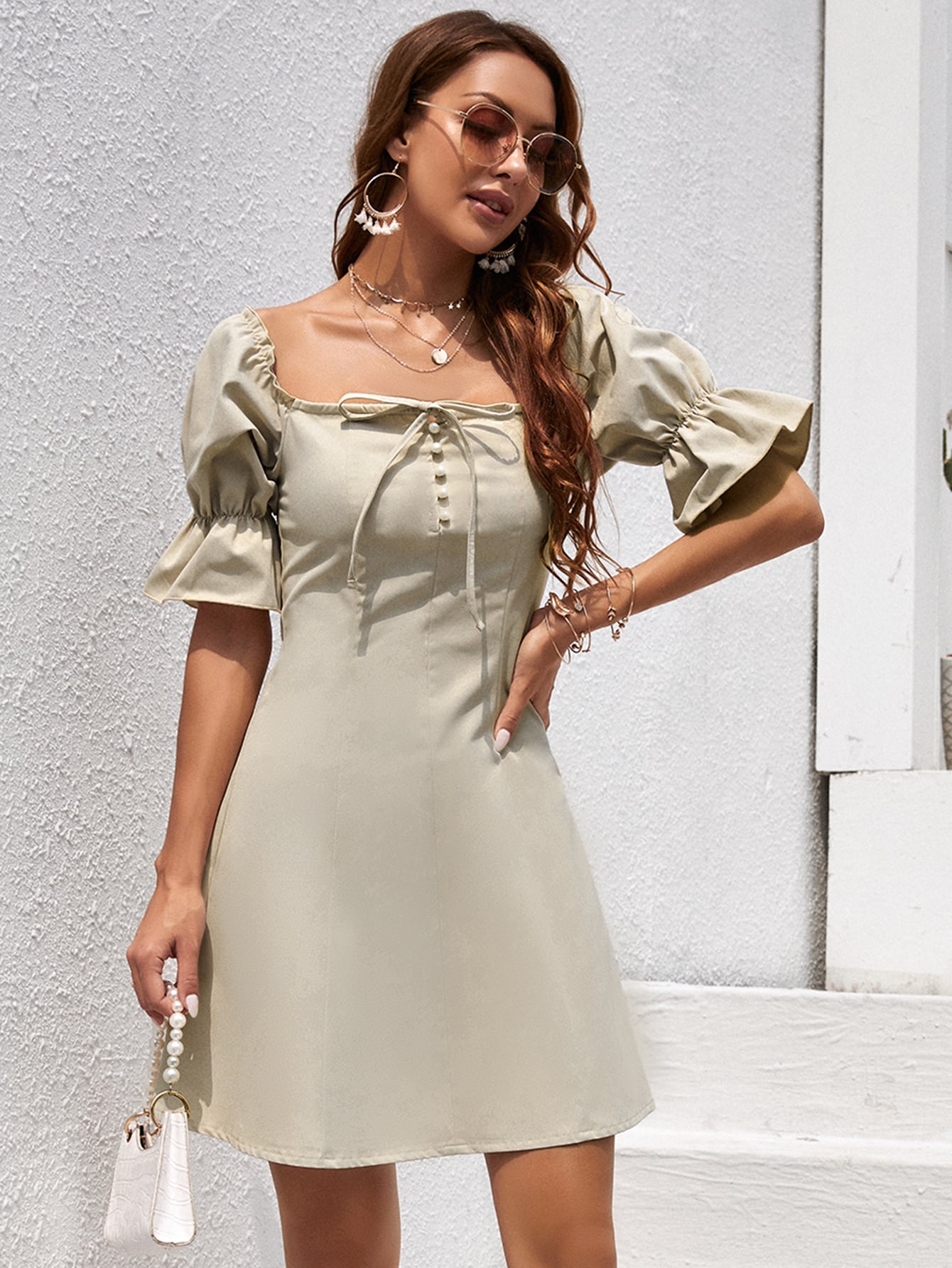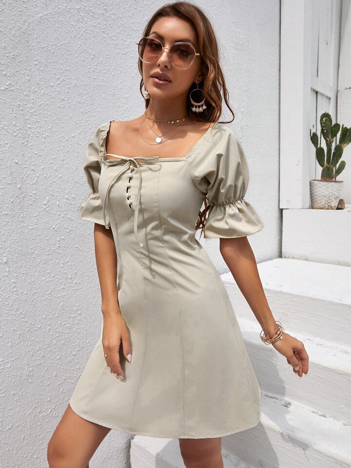 Robe col carré avec manches bouffantes