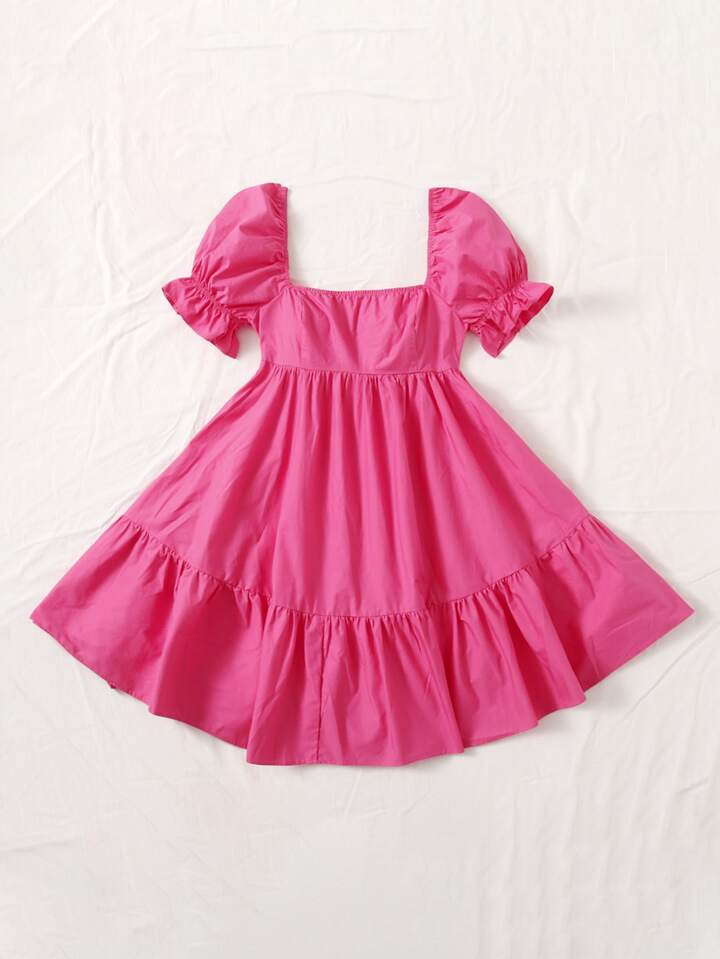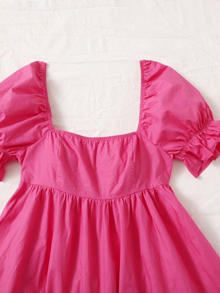 Robe à col carré à manches bouffantes à volants