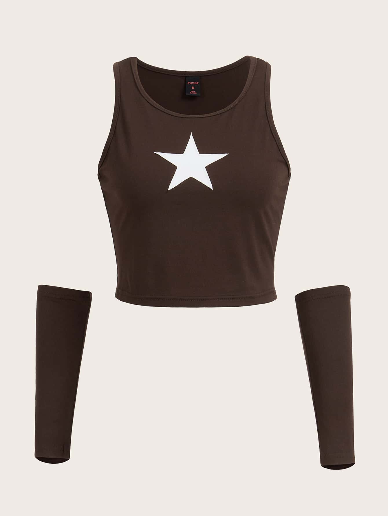 Top Sans Manches Court Imprimé Étoile Avec Manches De Bras