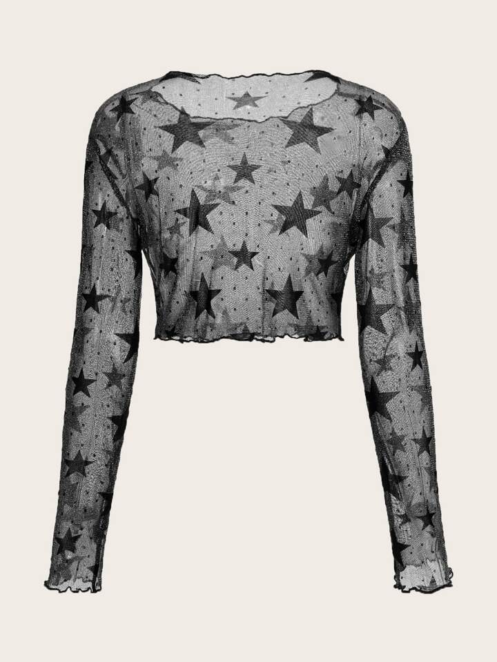 Top à imprimé étoile à ourlet ondulé en tulle