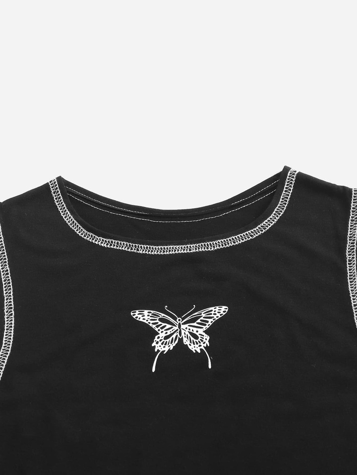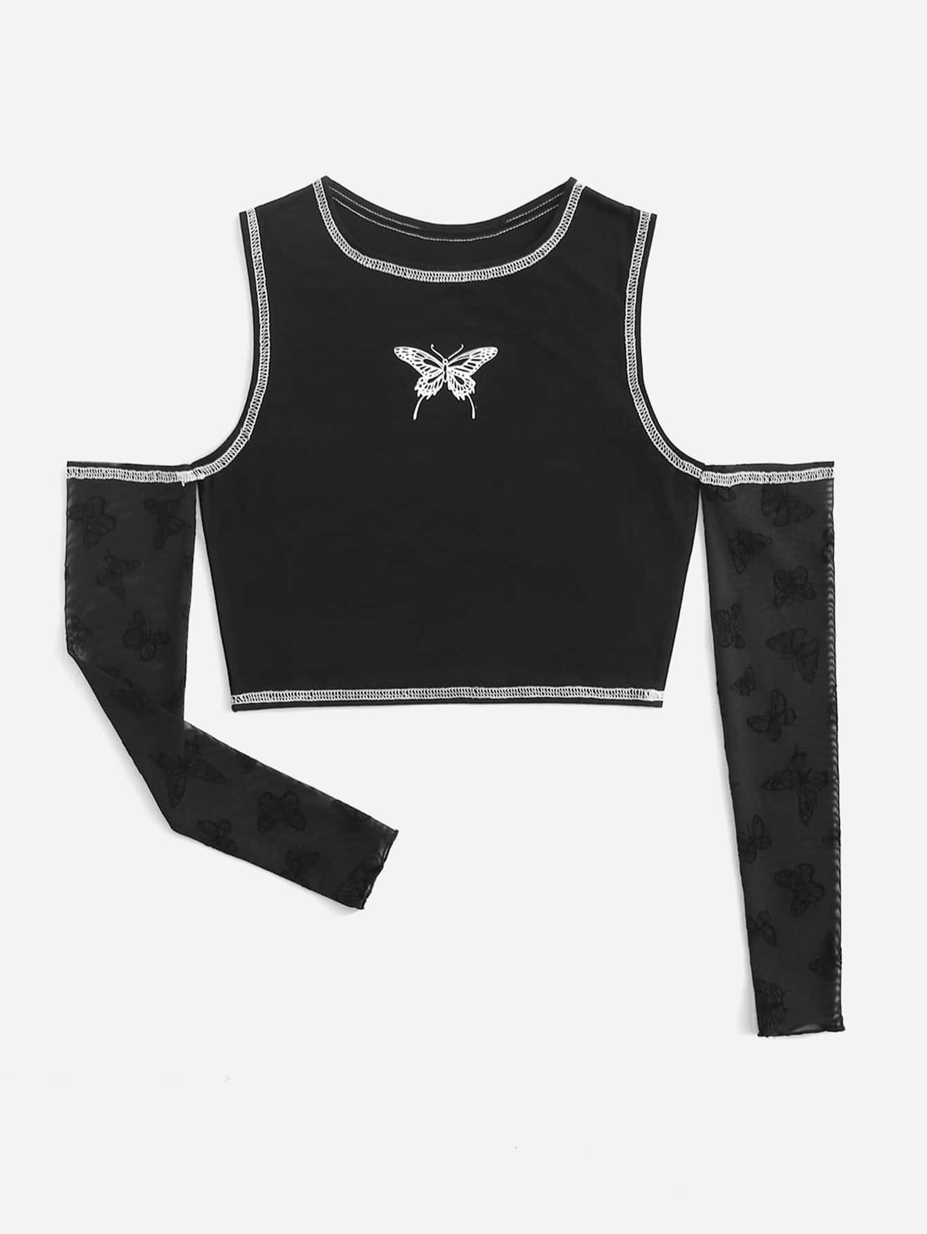 T-shirt court à couture papillon à épaules dénudées