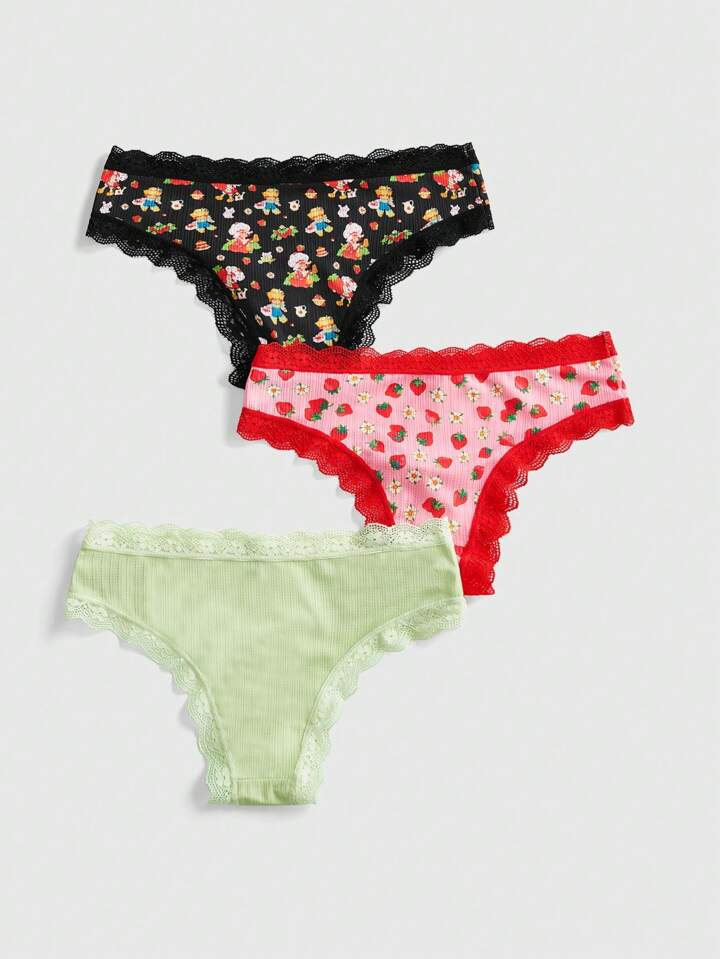 Culottes avec détail de nœud en dentelle contrastante à imprimé fraise
