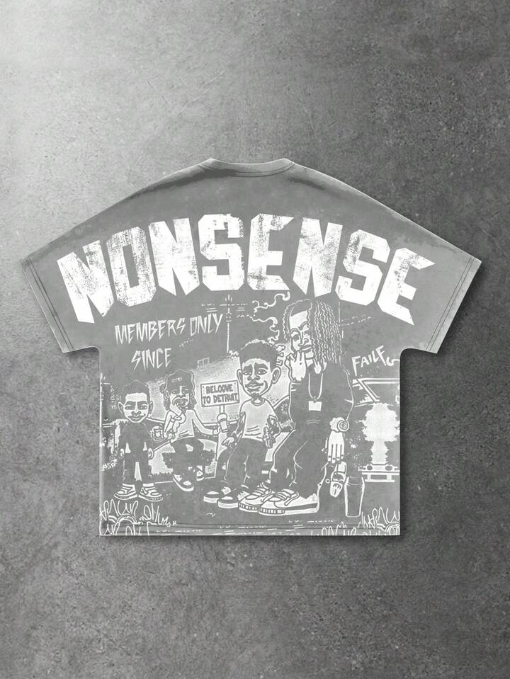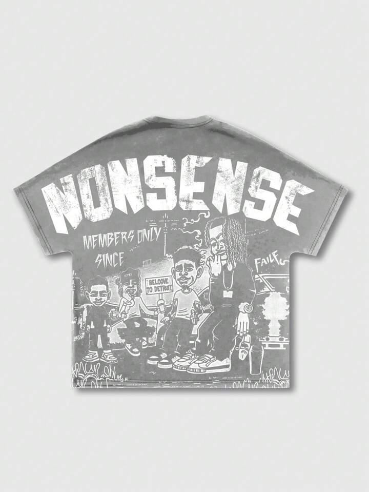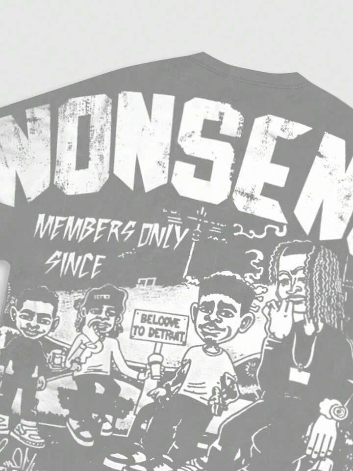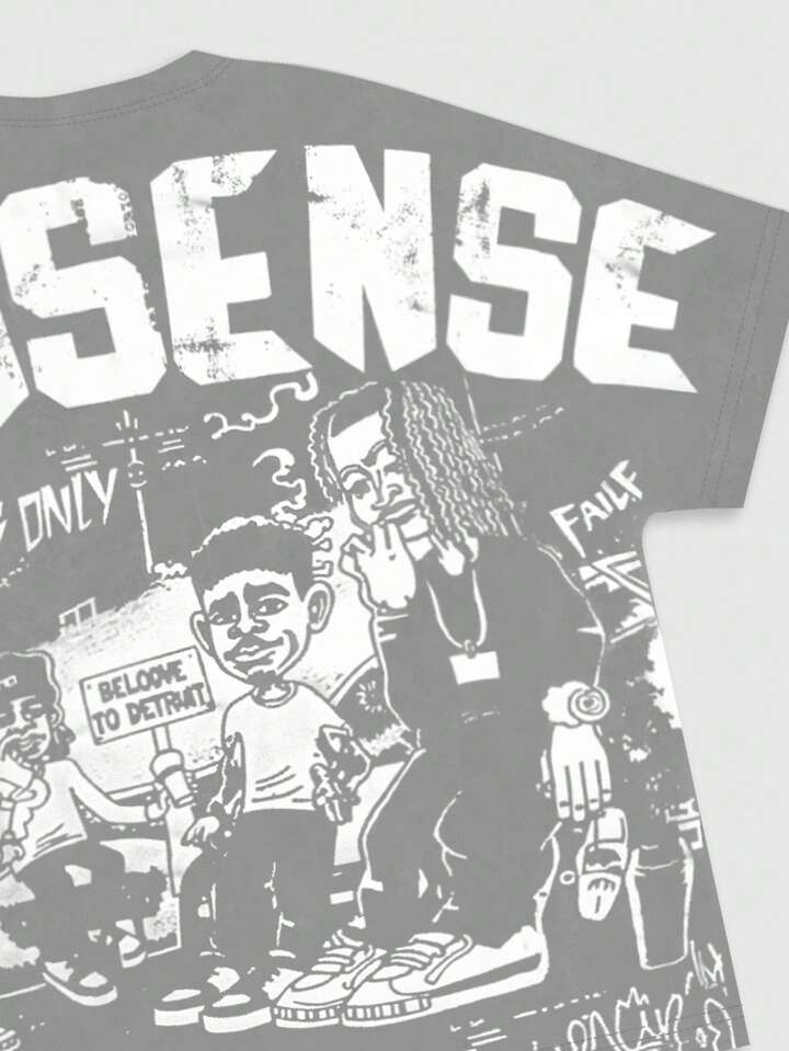 Street Life 1 pièce T-shirt casual à manches courtes, col rond, motif chauve-souris pour homme