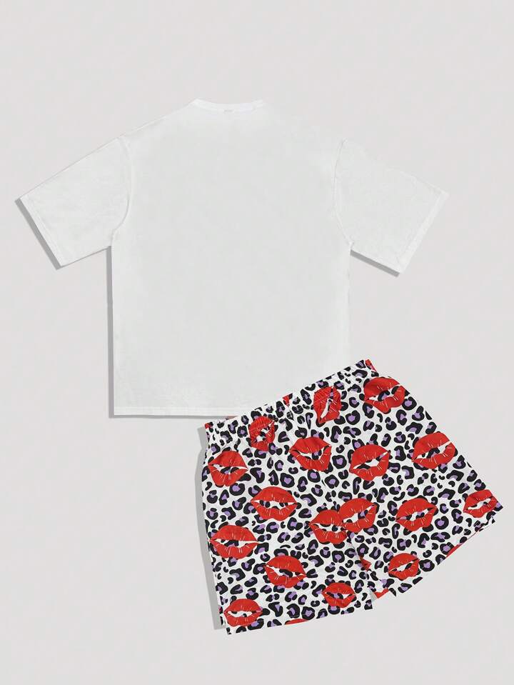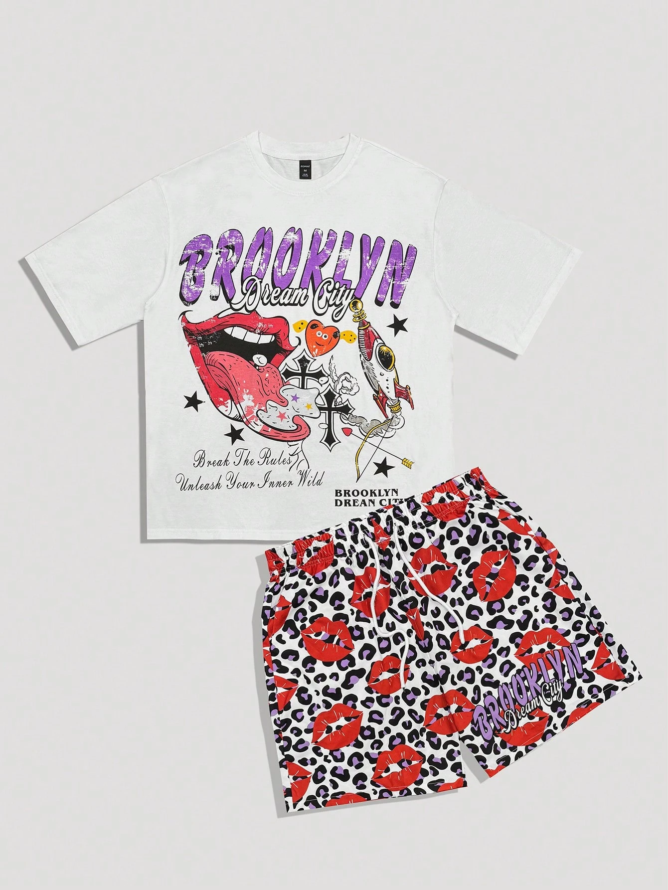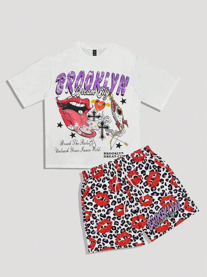 Street Life 2 pièces Ensemble t-shirt et short mode de rue imprimé léopard pour hommes