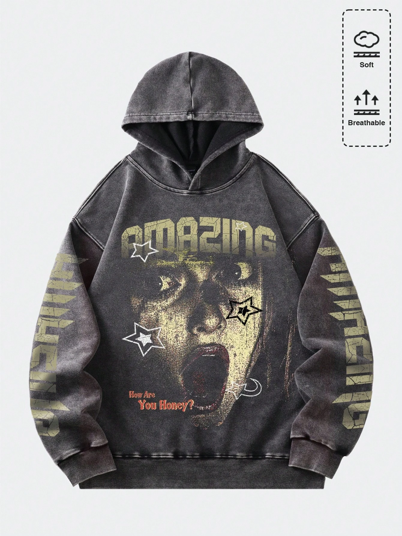 Street Life Sweat-shirt à capuche imprimé figure pour garçon, lavé