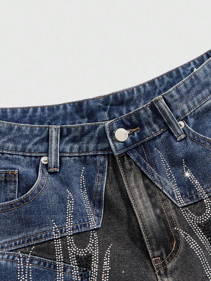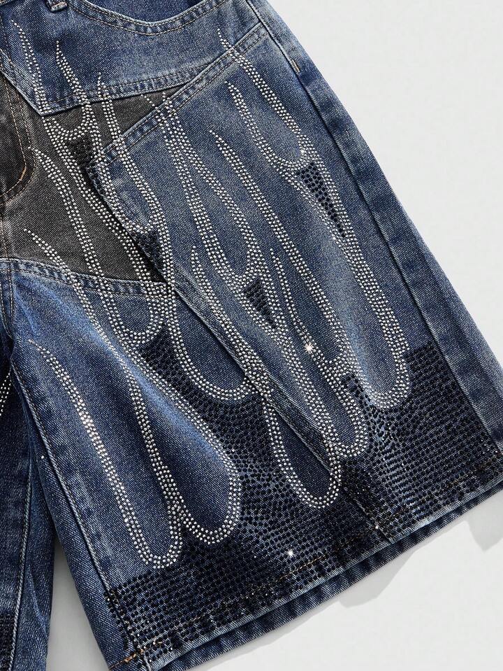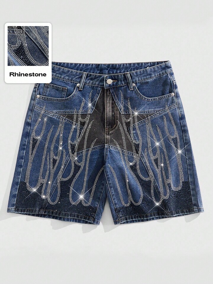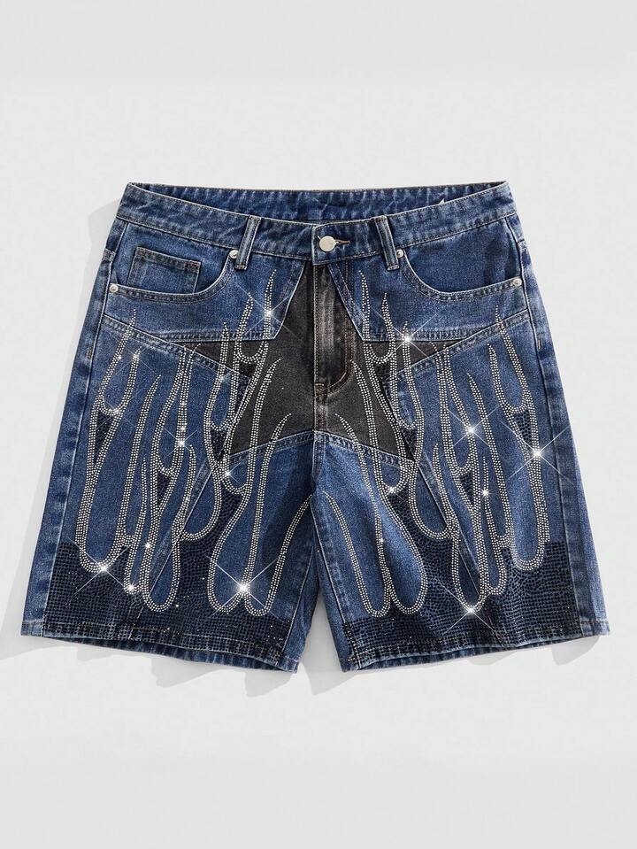 Street Life Short en jean décontracté et polyvalent pour hommes avec boutons strass