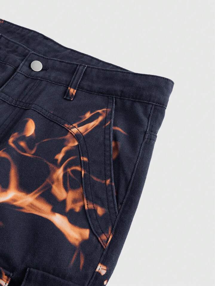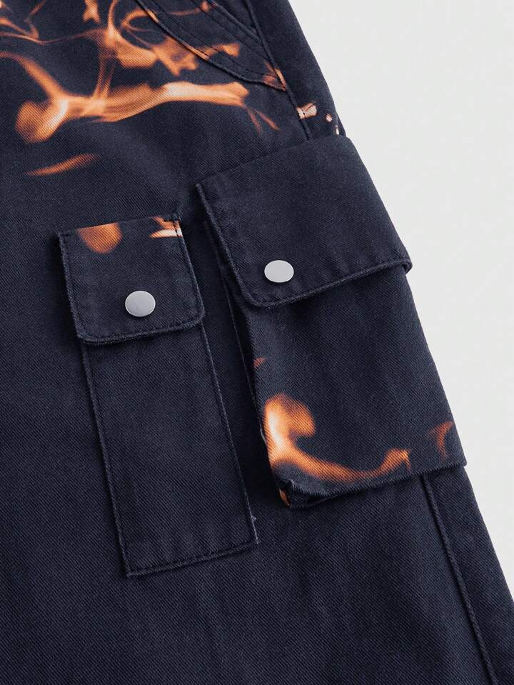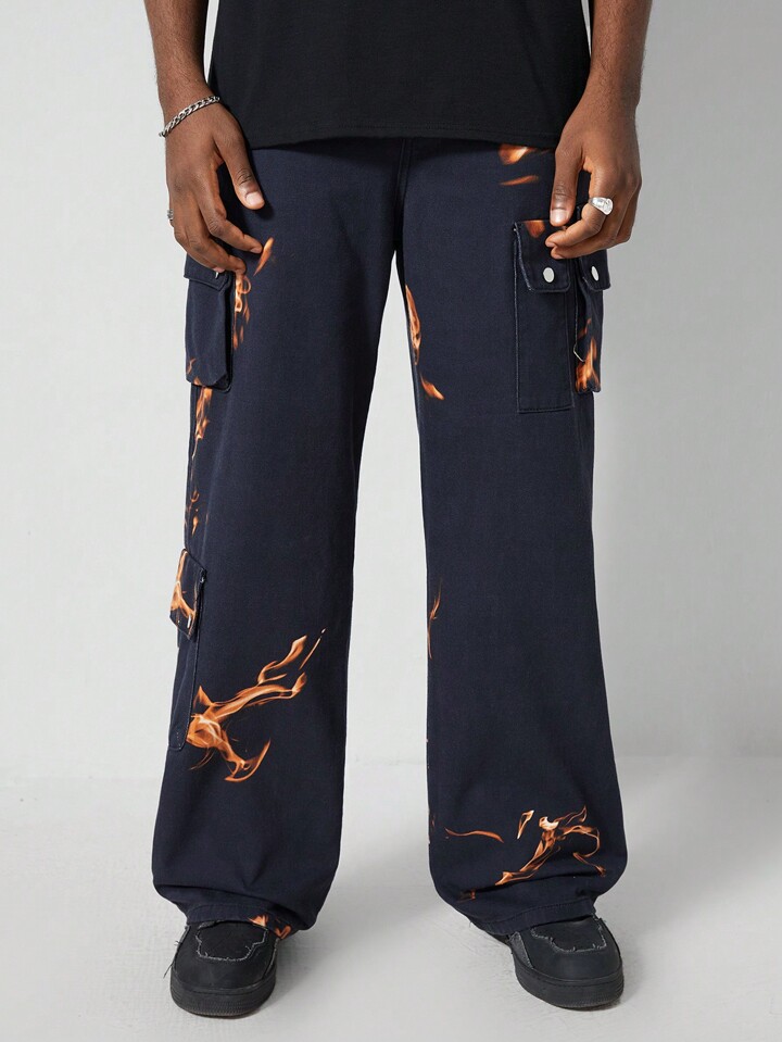 Street Life Jeans cargo imprimés de flammes décontractés pour hommes