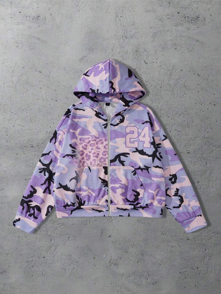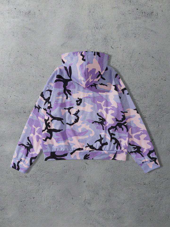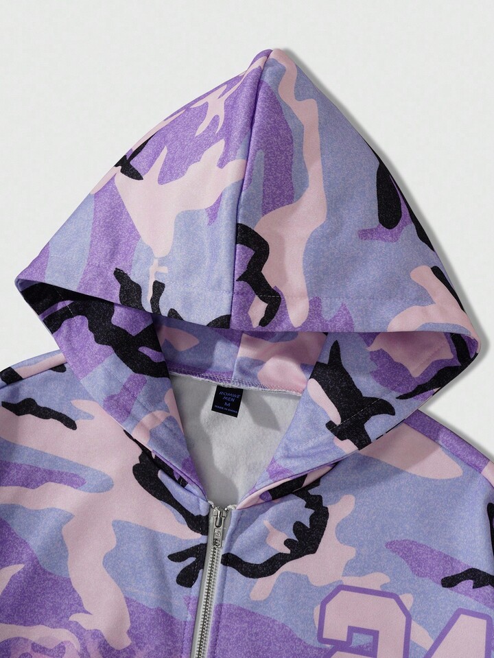 Street Life Sweat-shirt à capuche décontracté et ample à manches longues avec zip, style camouflage, pour hommes, automne