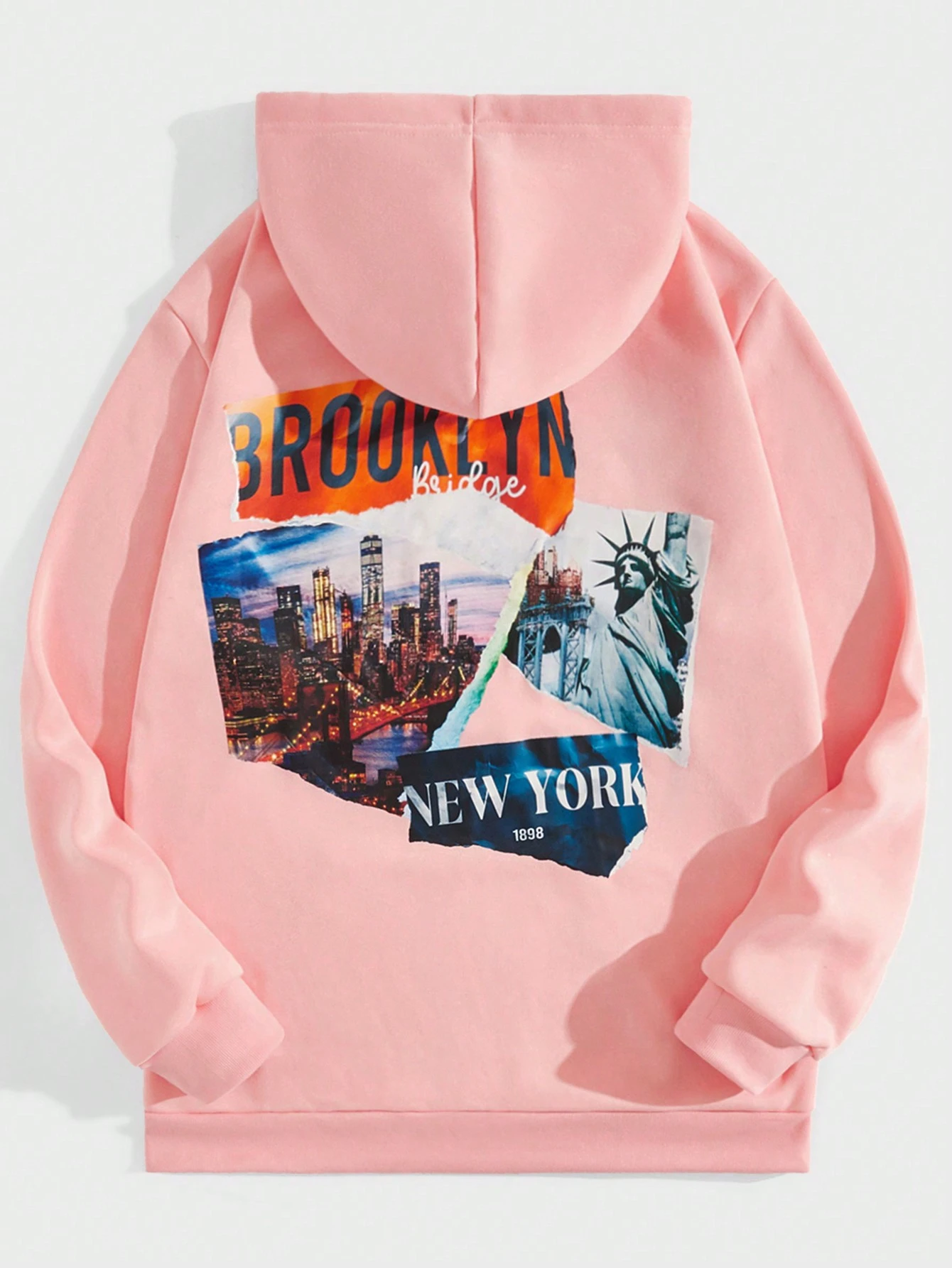Street Life Hommes Construction & Lettre Graphique Sweat À Capuche Doublé De Cordon De Serrage Thermique