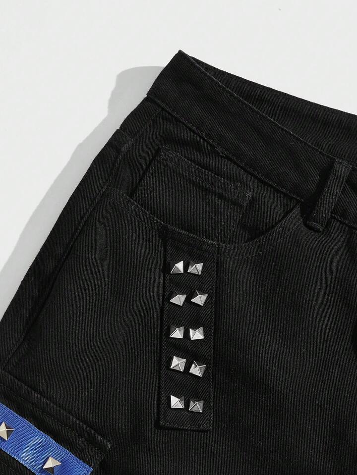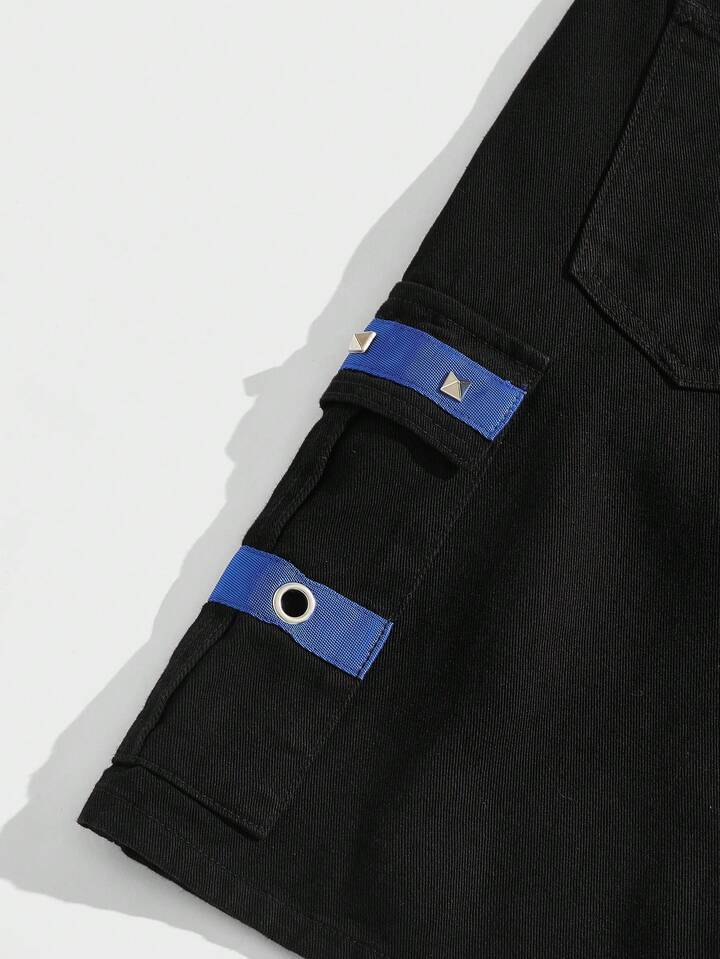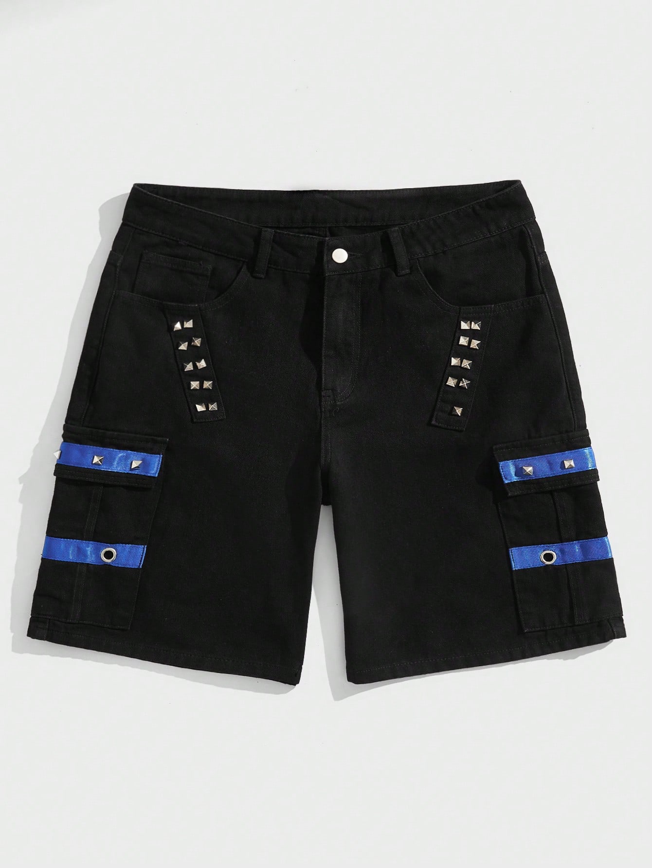 Street Life Homme Short En Jean En Coton Clouté Poche À Rabat