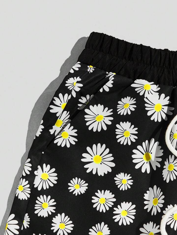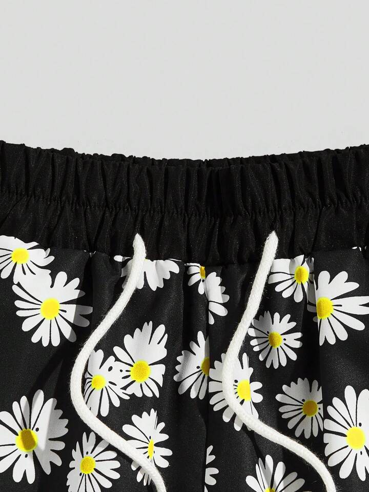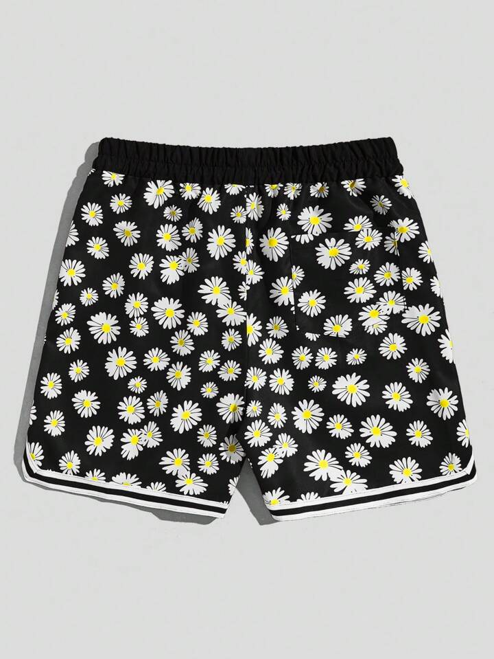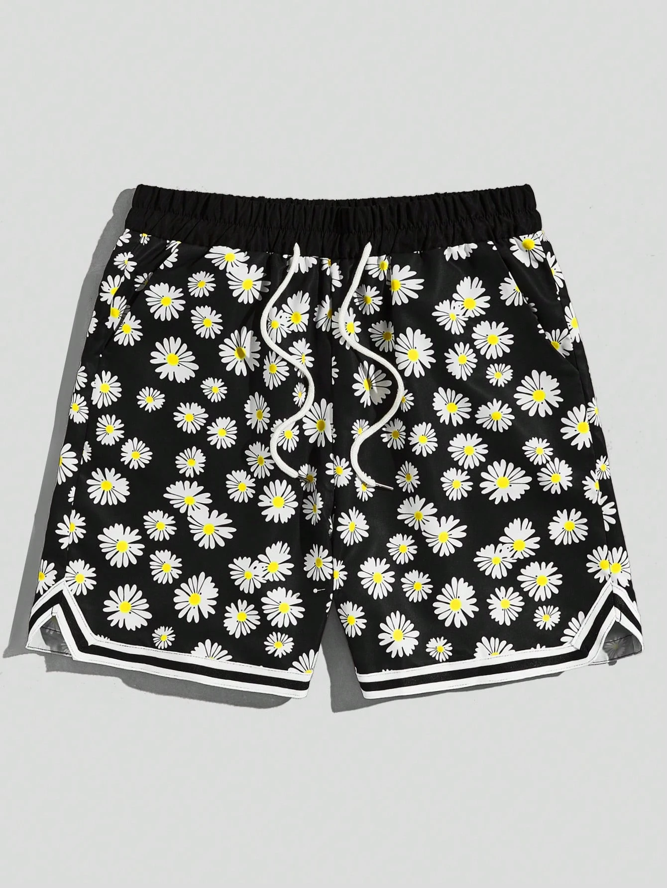 Street Life Homme Short Imprimé Marguerite À Ourlet À Rayures À Cordon