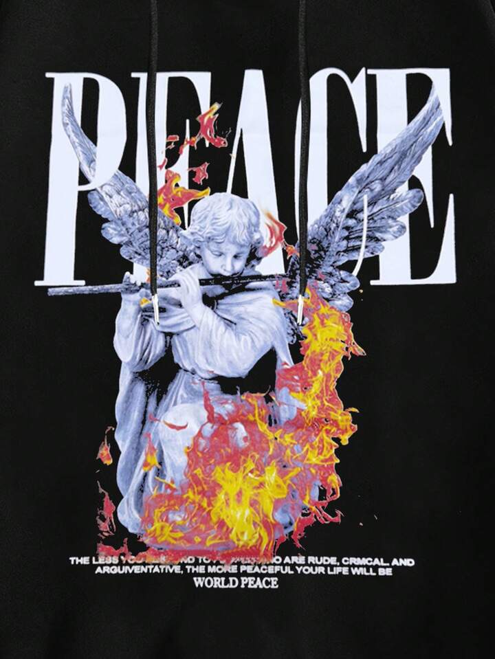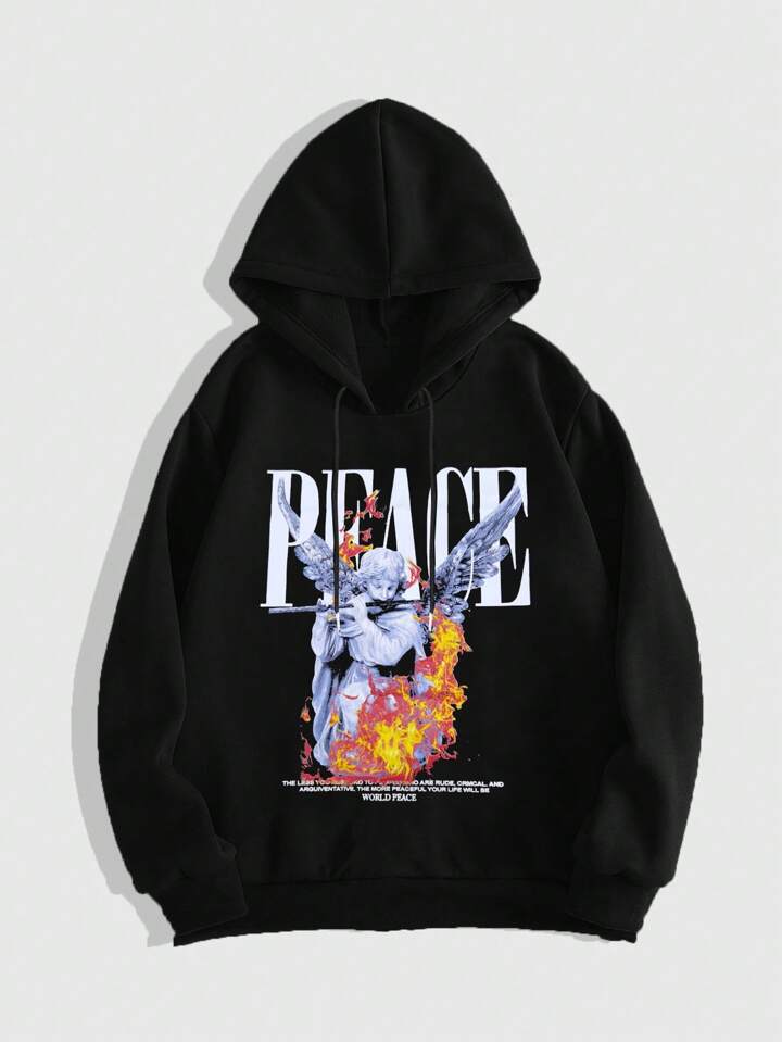 Street Life Homme Sweat-Shirt À Capuche Figure Et Lettre À Cordon À Doublure Thermique