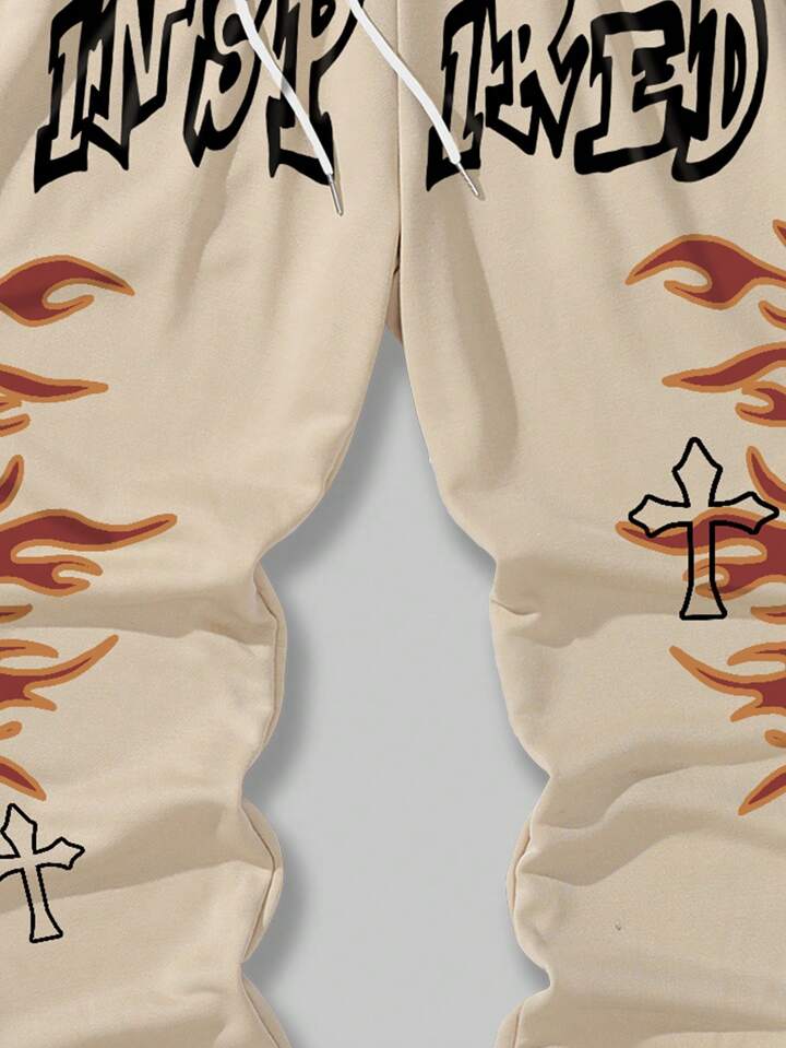 Street Life Homme Pantalon De Survêtement Motif Feu Et Lettre À Cordon