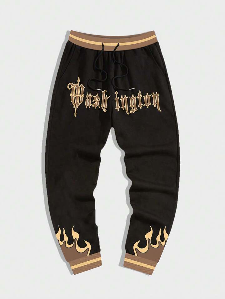 Street Life Homme Pantalon De Survêtement Motif Feu Et Lettre À Ourlet À Rayures À Cordon