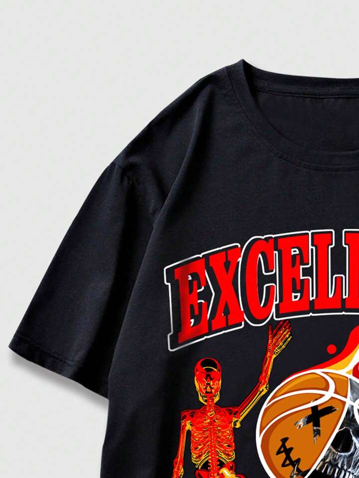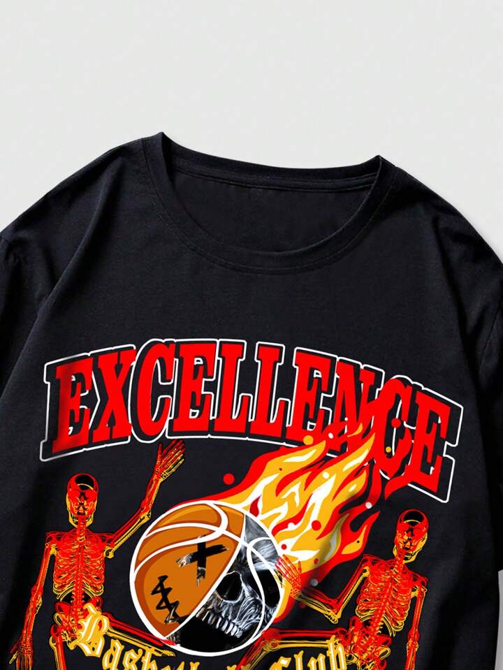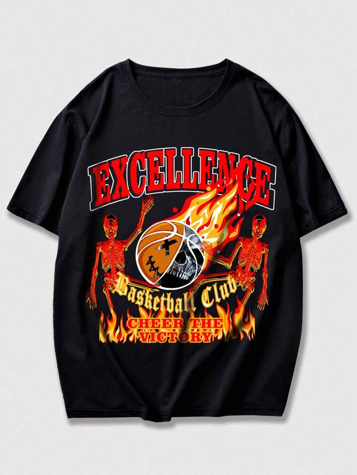 Street Life Homme T-shirt Imprimé Feu Et Lettre