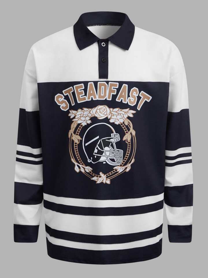 Street Life Homme Polo lettre fleuri à blocs de couleurs