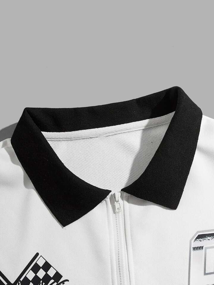 Street Life Homme Sweat-shirt à lettres à blocs de couleurs zippé