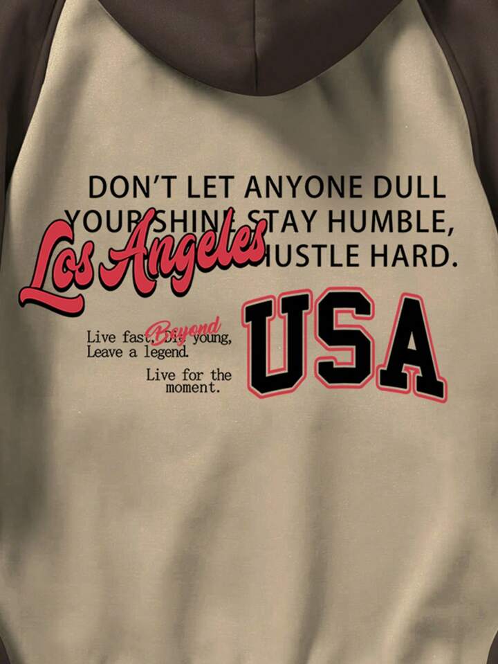 Street Life Homme Sweat-Shirt À Capuche À Lettres Manches Raglan À Cordon