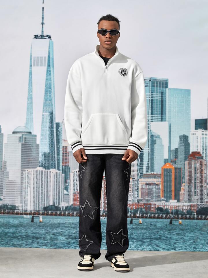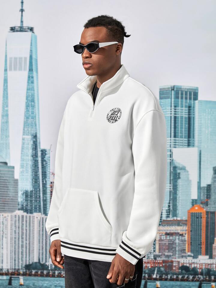 Street Life Homme Sweat-shirt à lettres à ourlet à rayures à poche kangourou