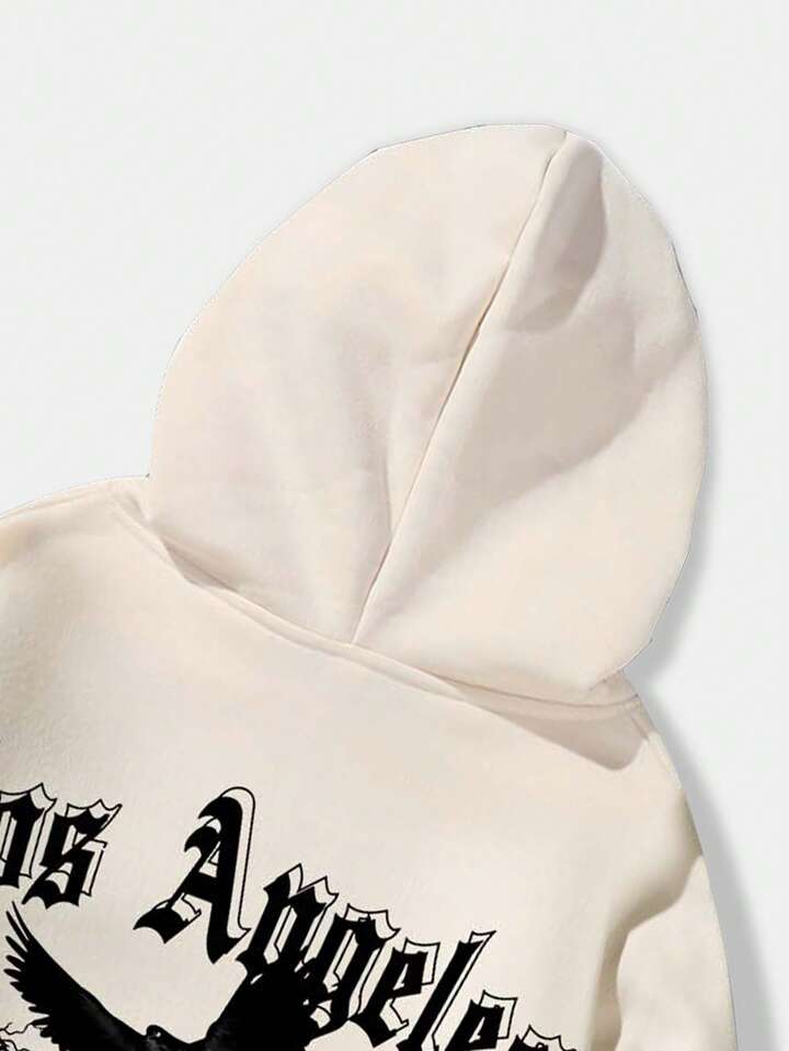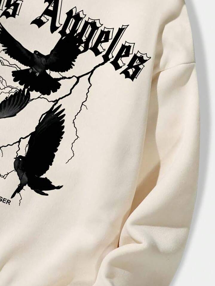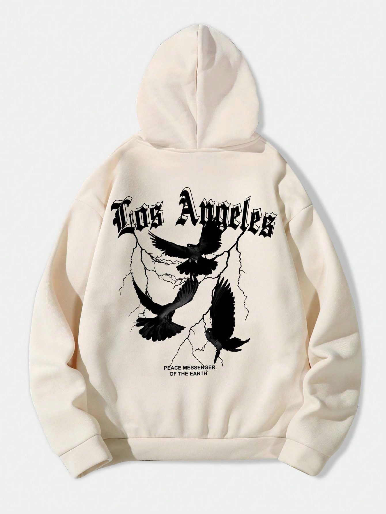 Street Life Homme Sweat-shirt à capuche thermique à imprimé pigeon et lettre à poche kangourou à cordon