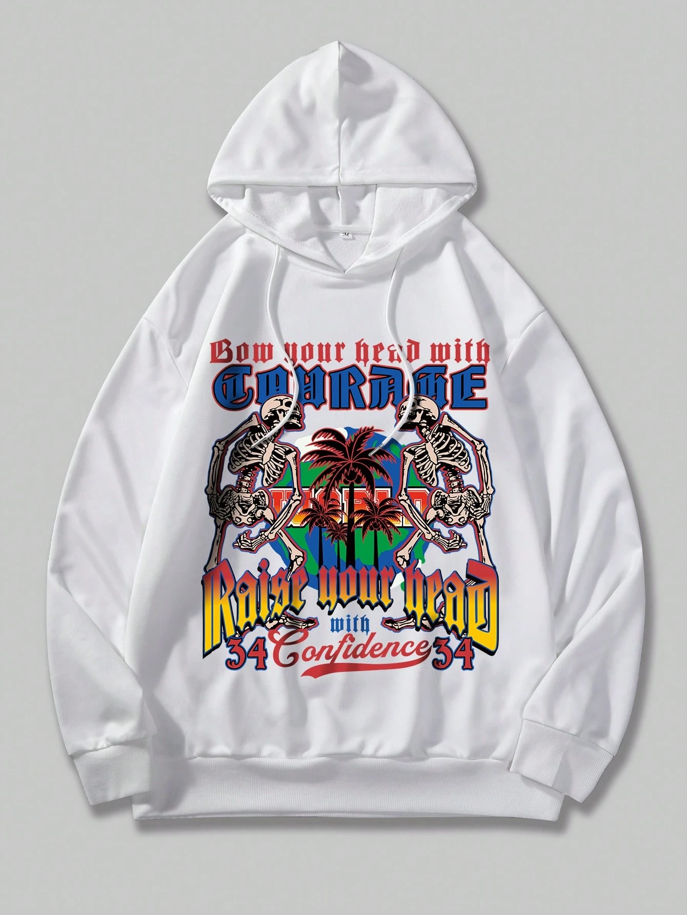 Street Life Homme Sweat-Shirt À Capuche Imprimé Squelette À Cordon
