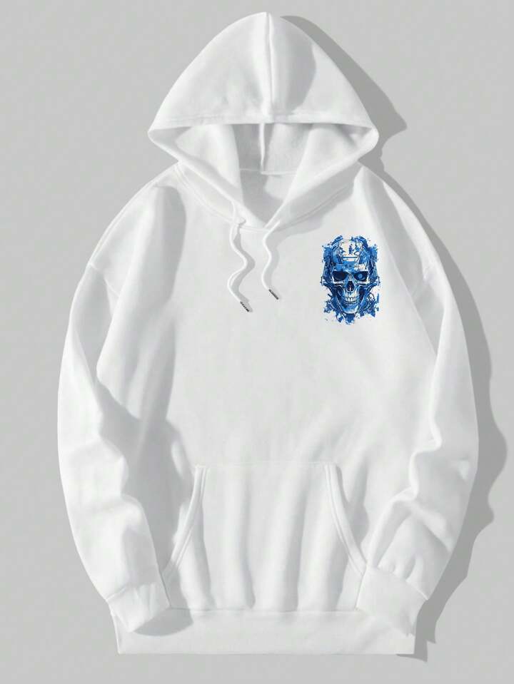 Street Life Homme Sweat-Shirt À Capuche Imprimé Tête De Mort Épaule tombante À Cordon