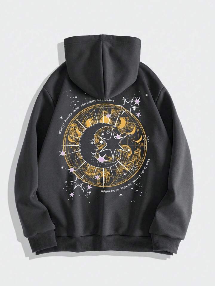 Street Life Homme Sweat-Shirt À Capuche Thermique Imprimé Soleil Et Lune À Poche Kangourou À Cordon