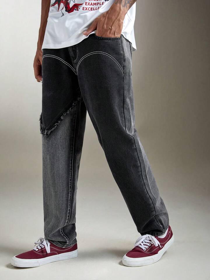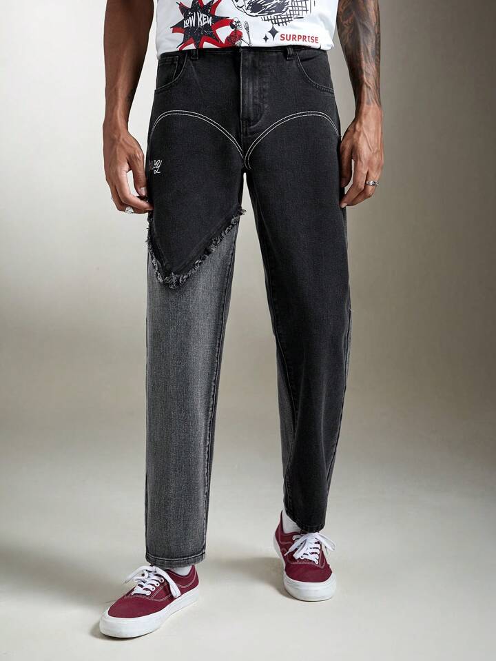 Street Life Homme Jean Droit Bicolore Effiloché