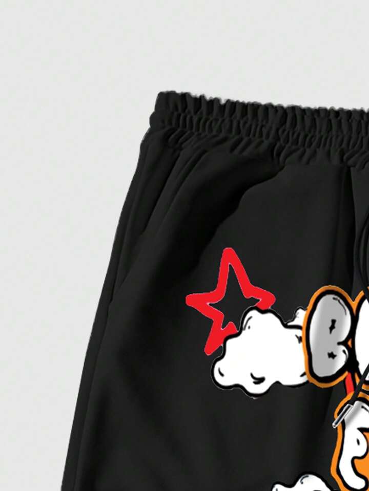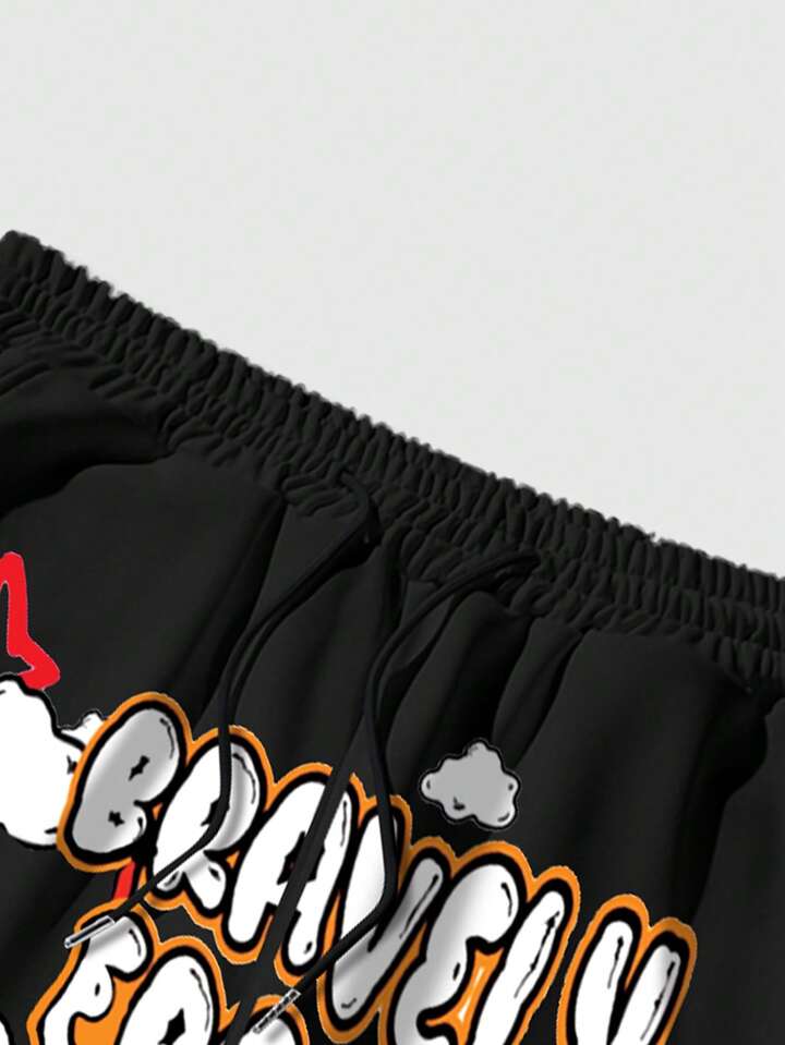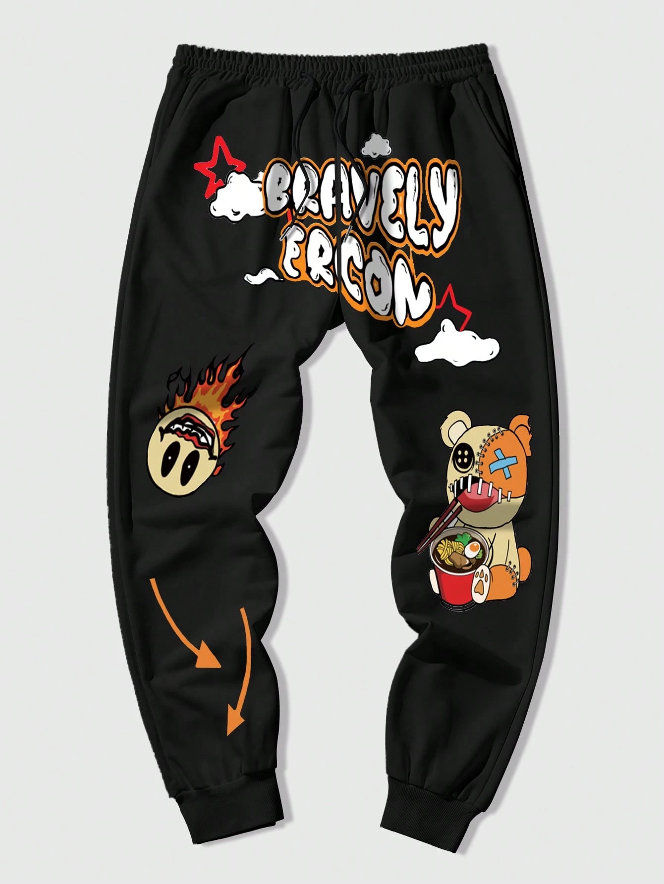 Street Life Pantalon de jogging décontracté à taille coulissante avec motif de lettres et de dessins animés