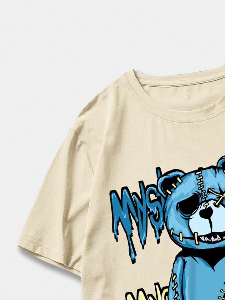 Street Life T-shirt Pour Homme Avec Graphisme D'ours Et Lettre, Épaules Basses