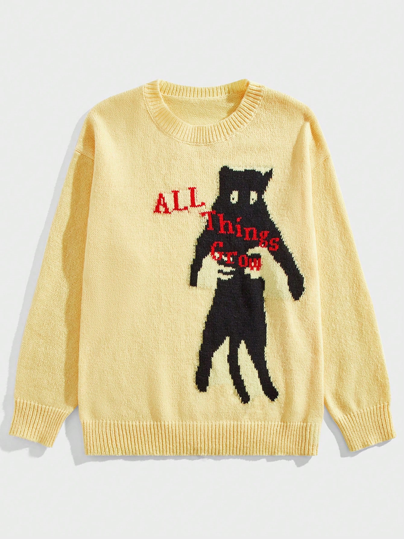 Street Life Pull Pour Hommes À Motif De Chat Et Lettre